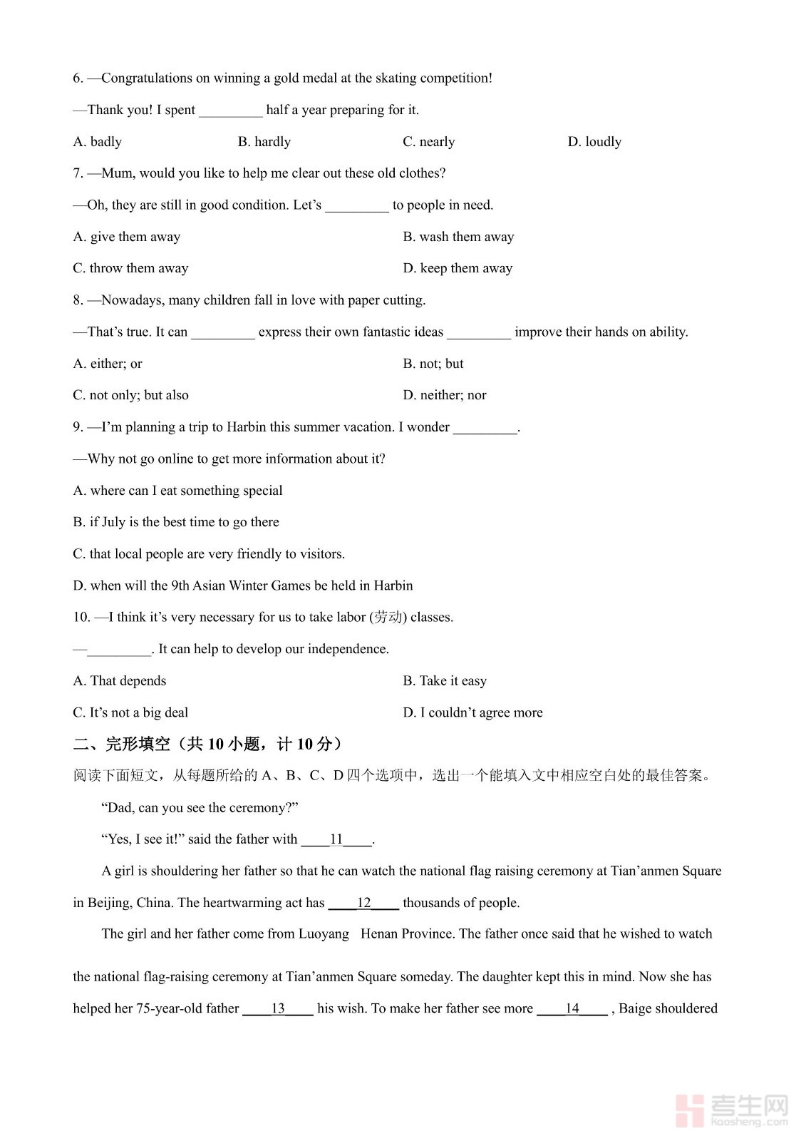2024年湖北省中考英语真题(含英文)