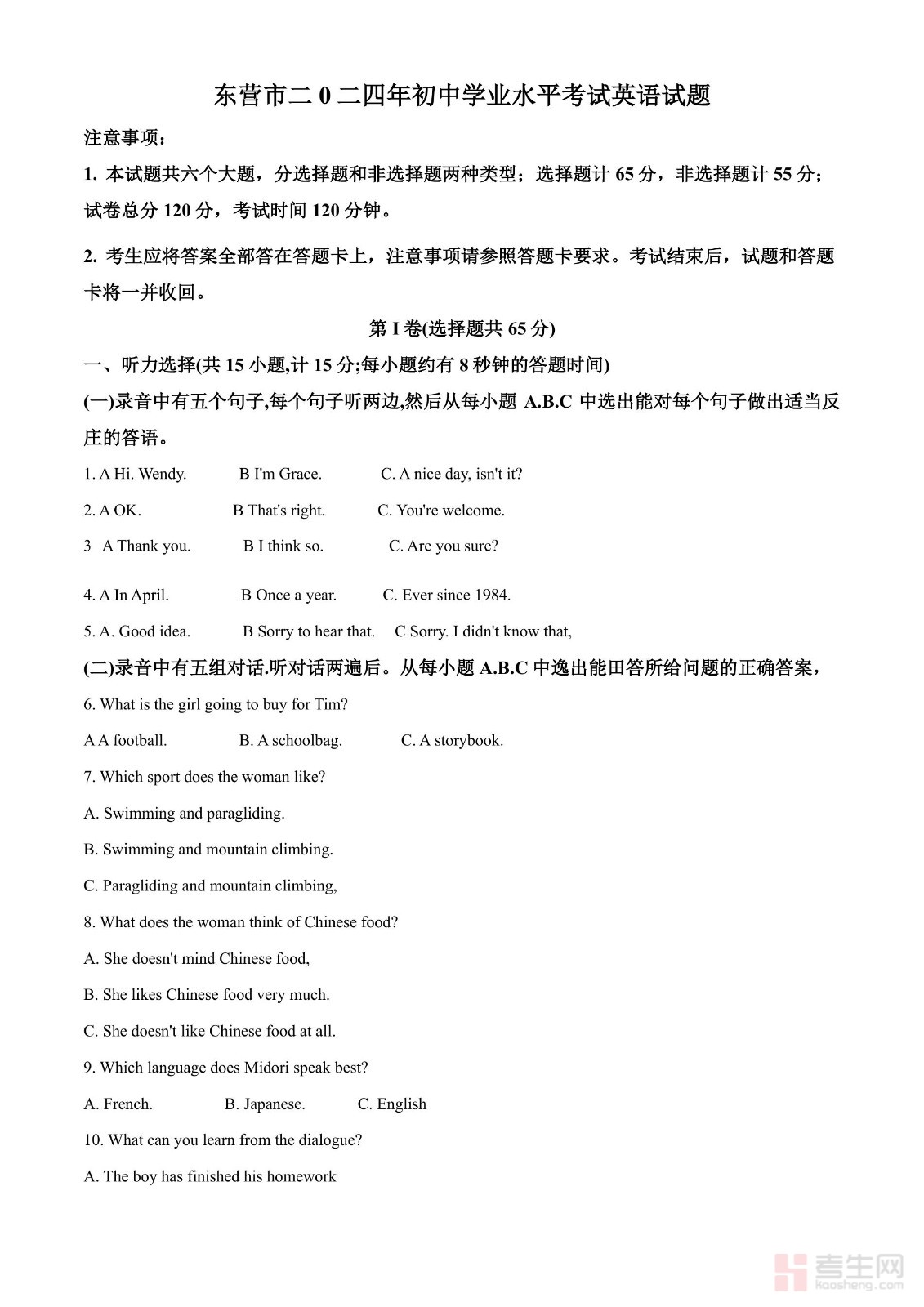 2024年湖北省中考英语真题原版及解析版(含听力文件)