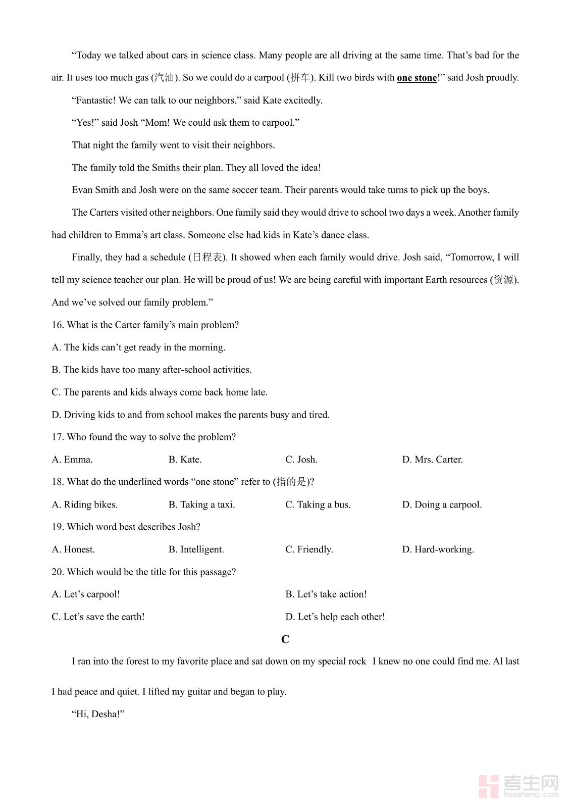 2024年北京市中考英语真题(原卷版)