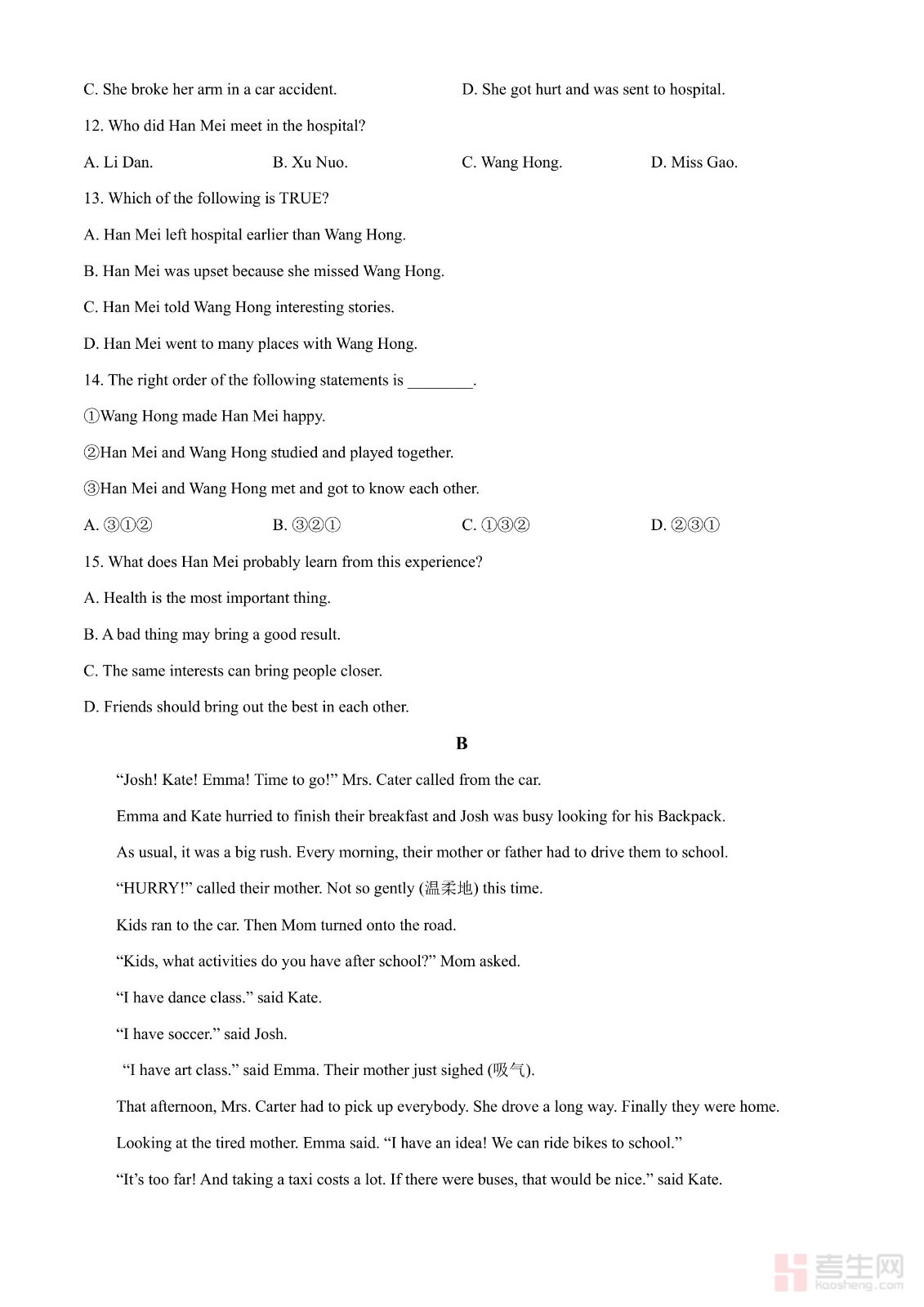 2024年湖北省中考英语真题(含英文)