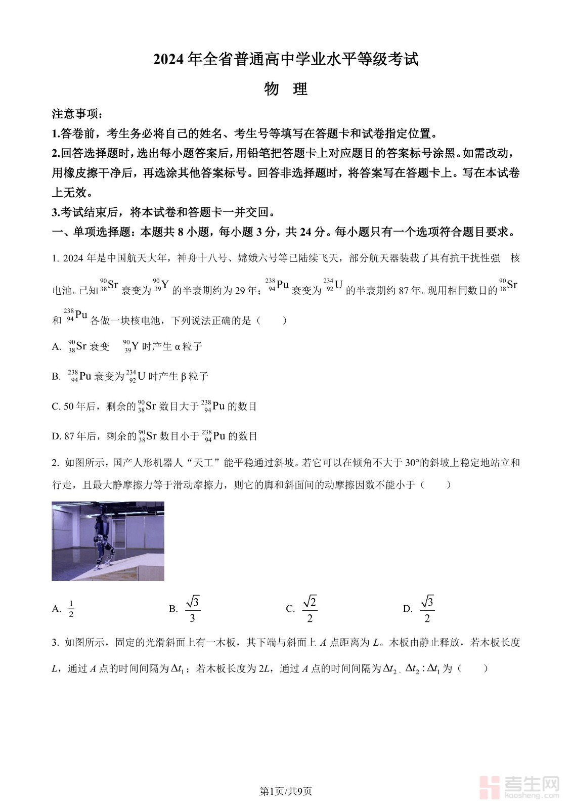 2024年高考物理试卷(山东)(空白卷)