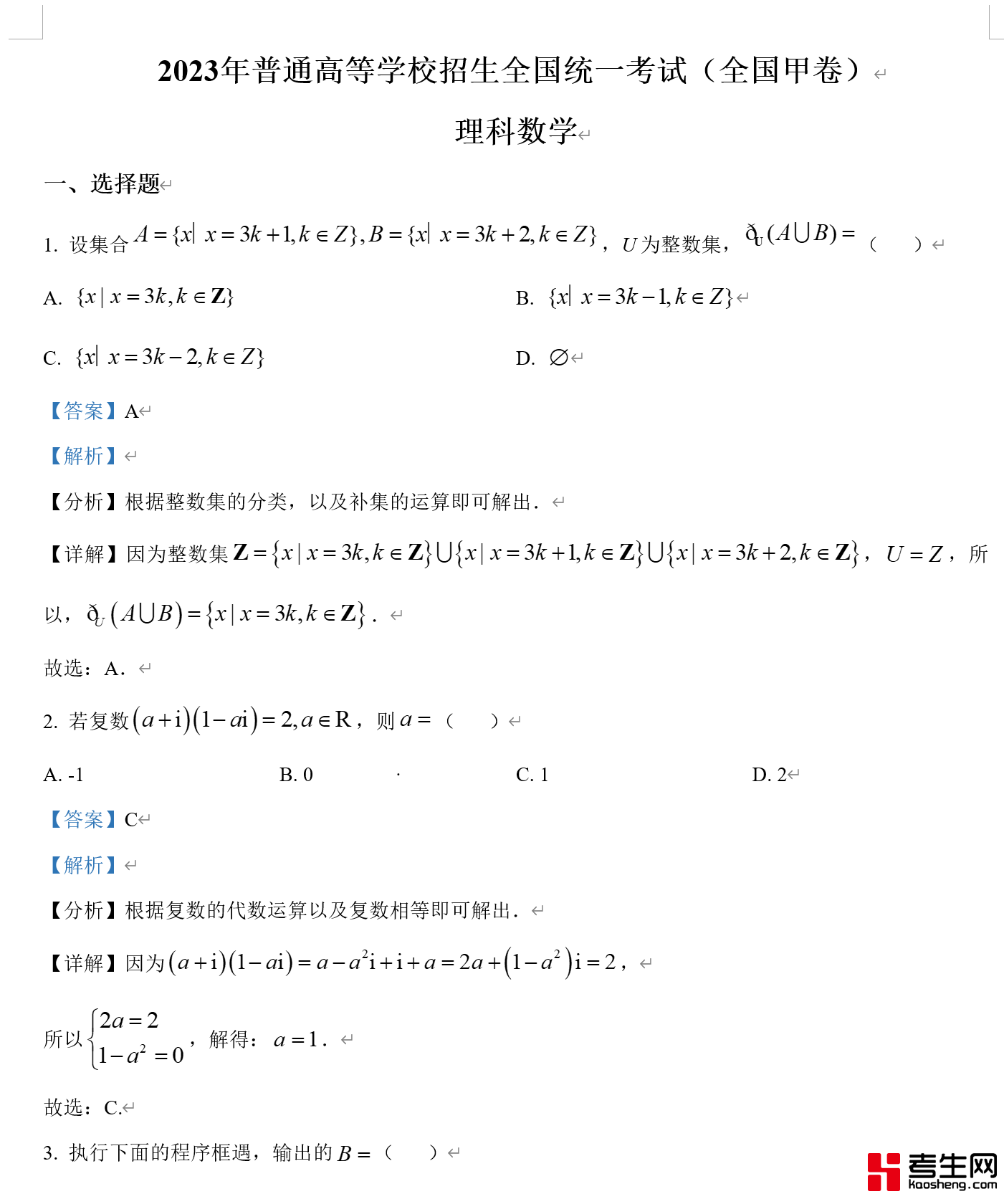 2023年高考全国甲卷数学(理)真题(解析版)