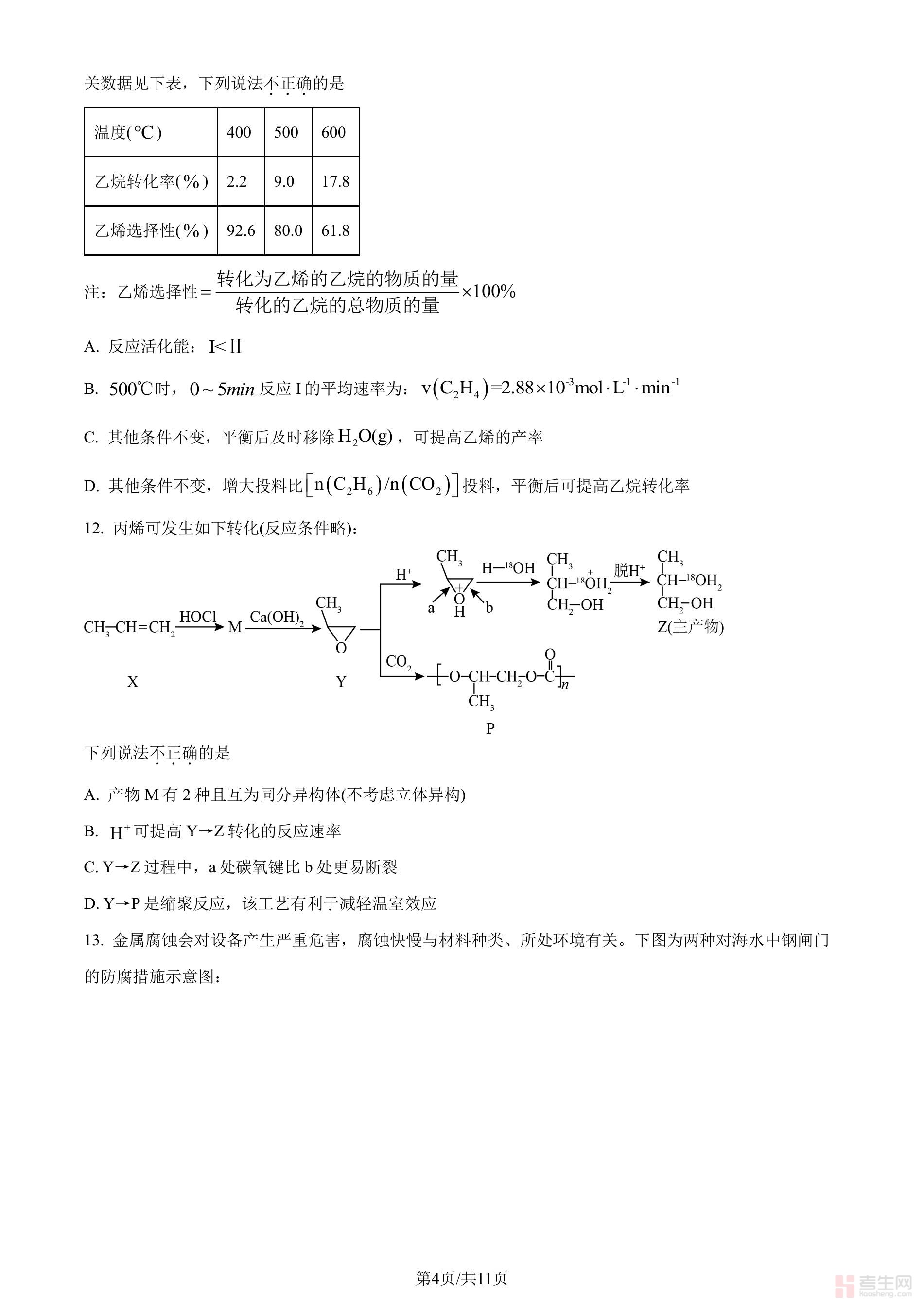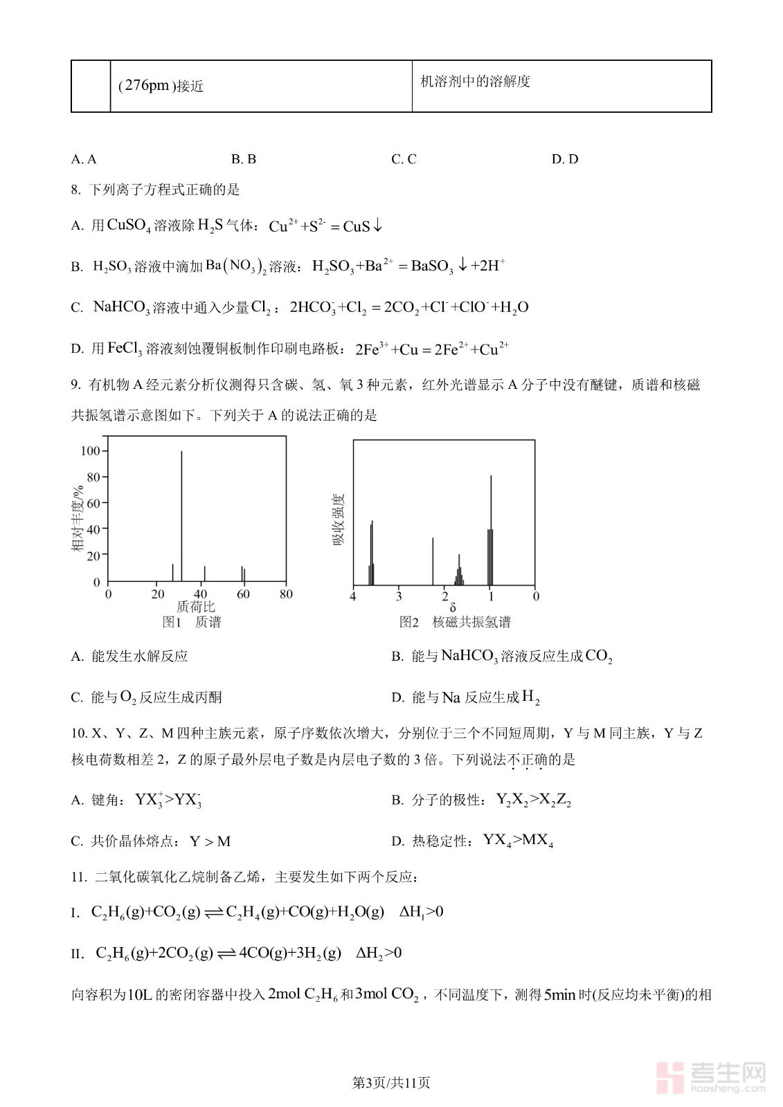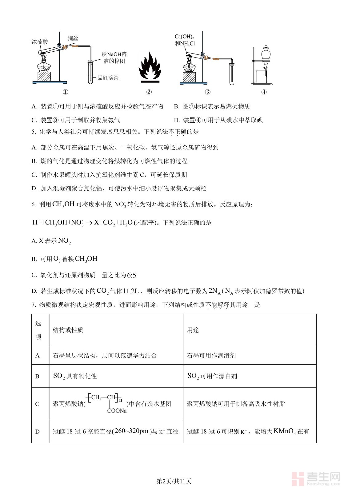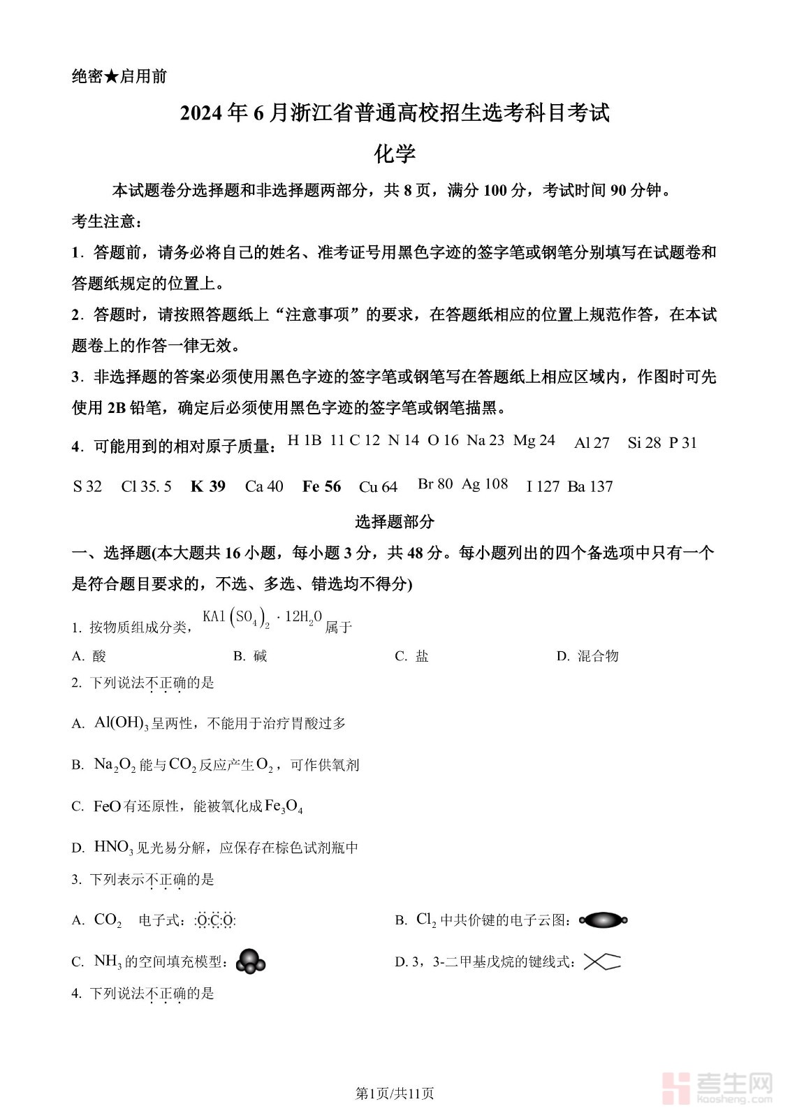 2024年高考化学试卷(浙江)(6月)(空白卷)