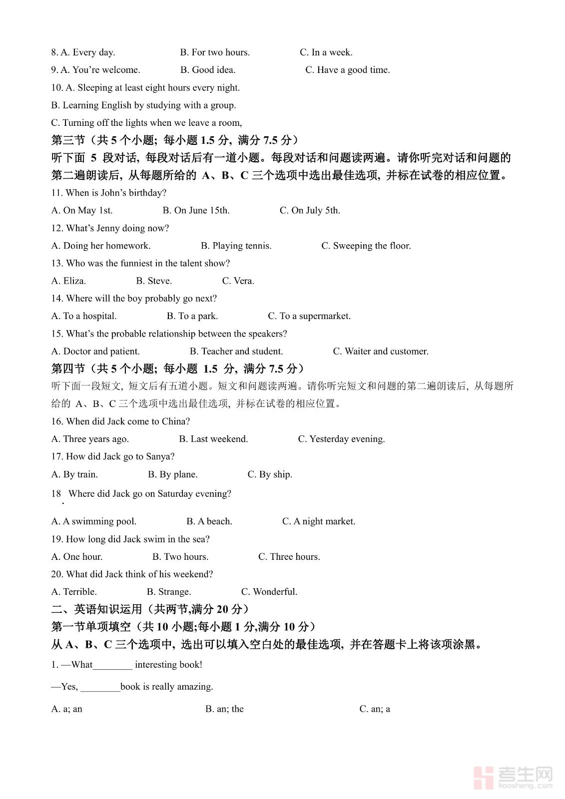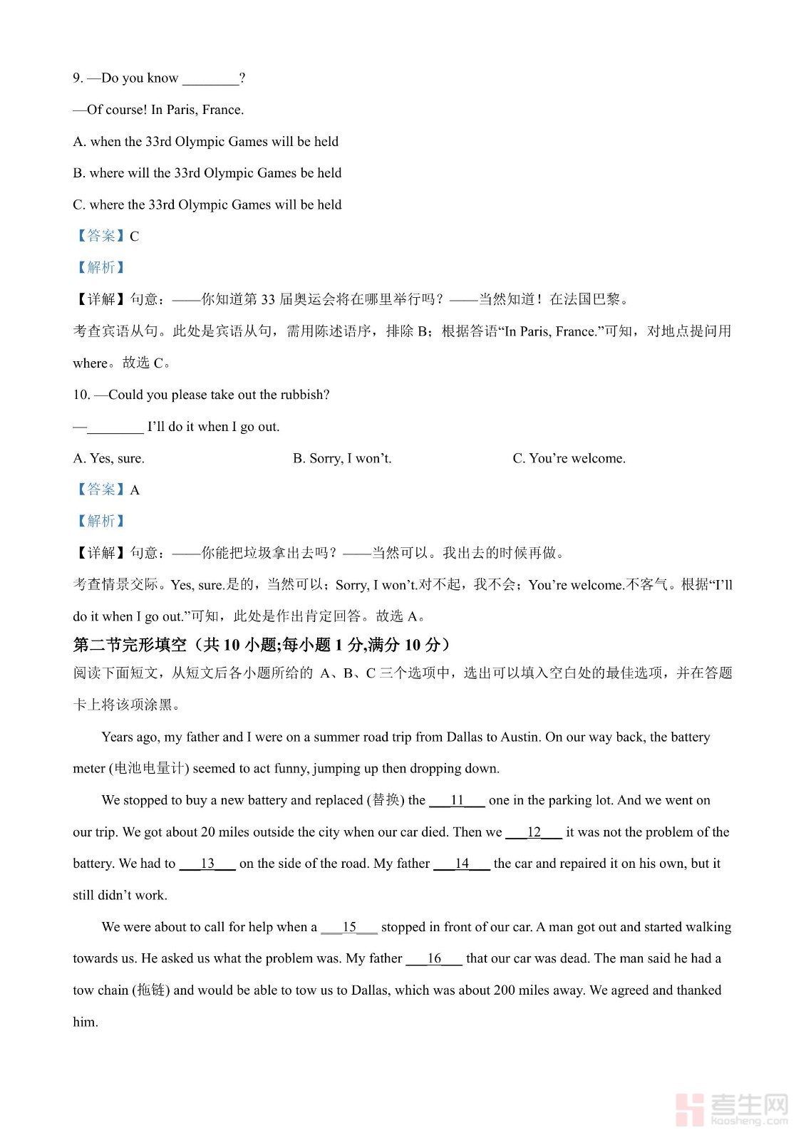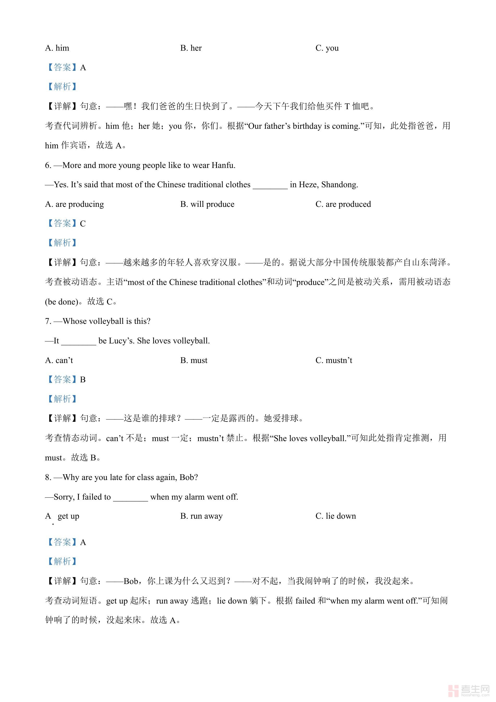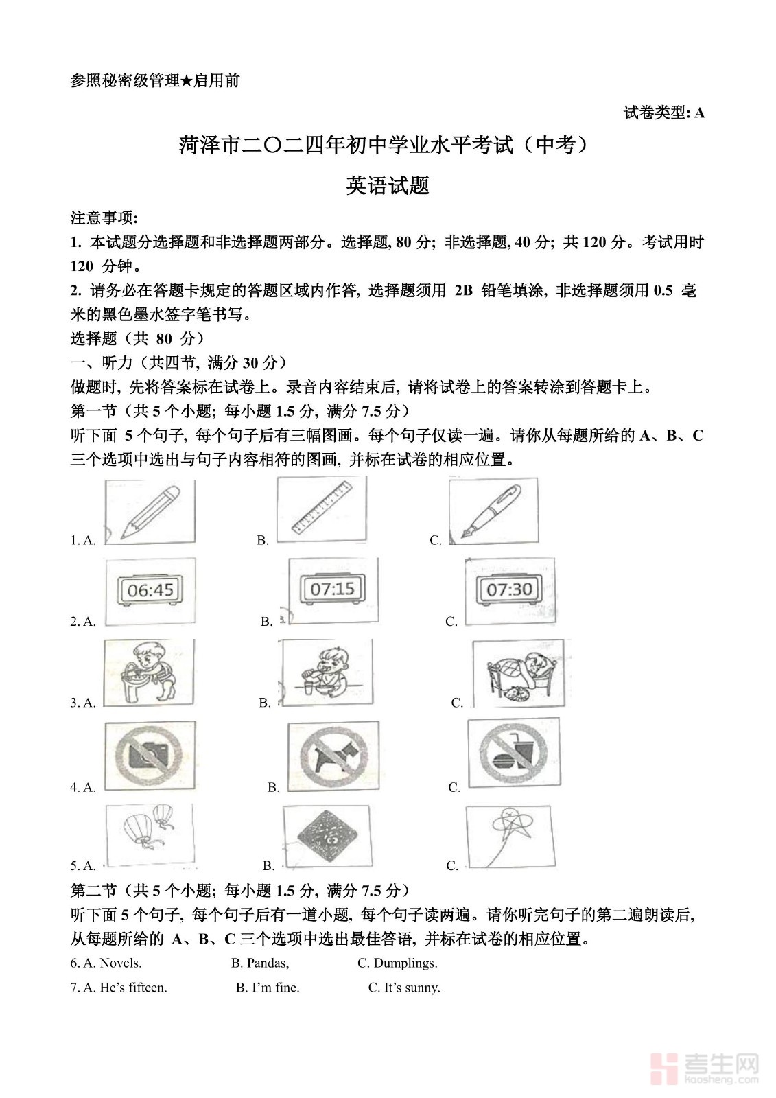 精品解析:2024年山东省菏泽市中考英语真题(解析版)