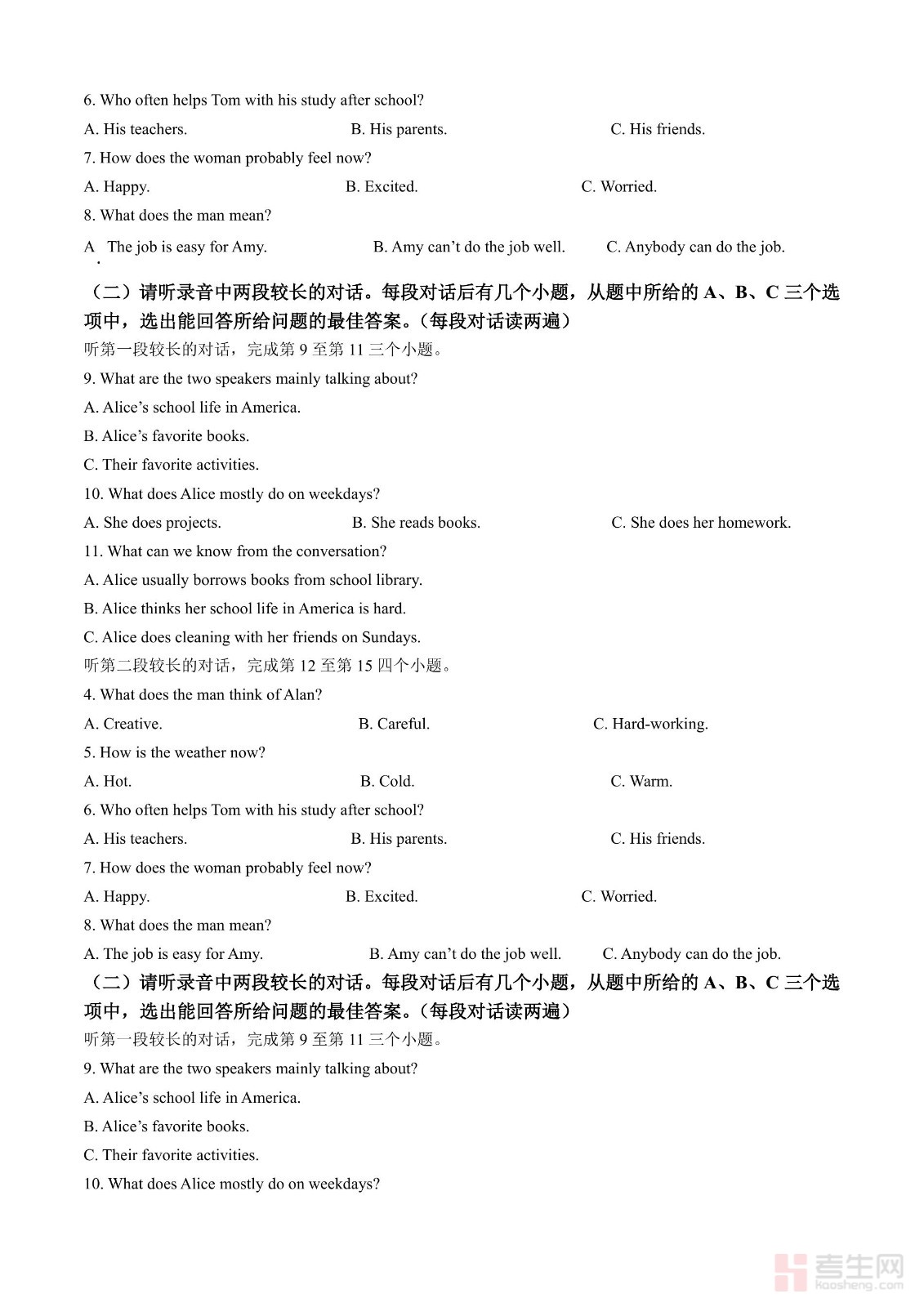 2024年湖北省中考英语真题原版及解析版(含听力文件)