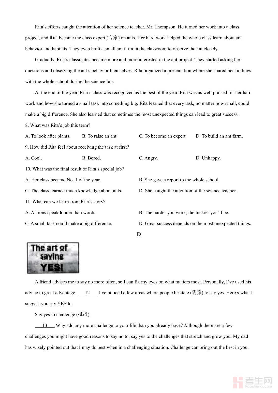2024年湖北省中考英语真题原版及解析版(含听力文件)