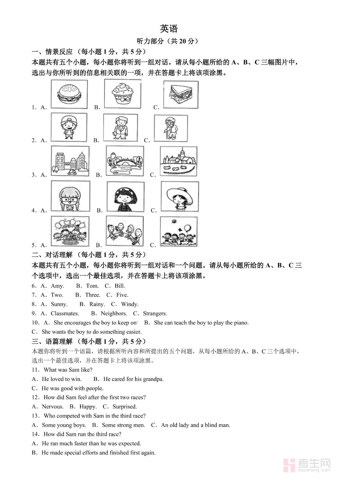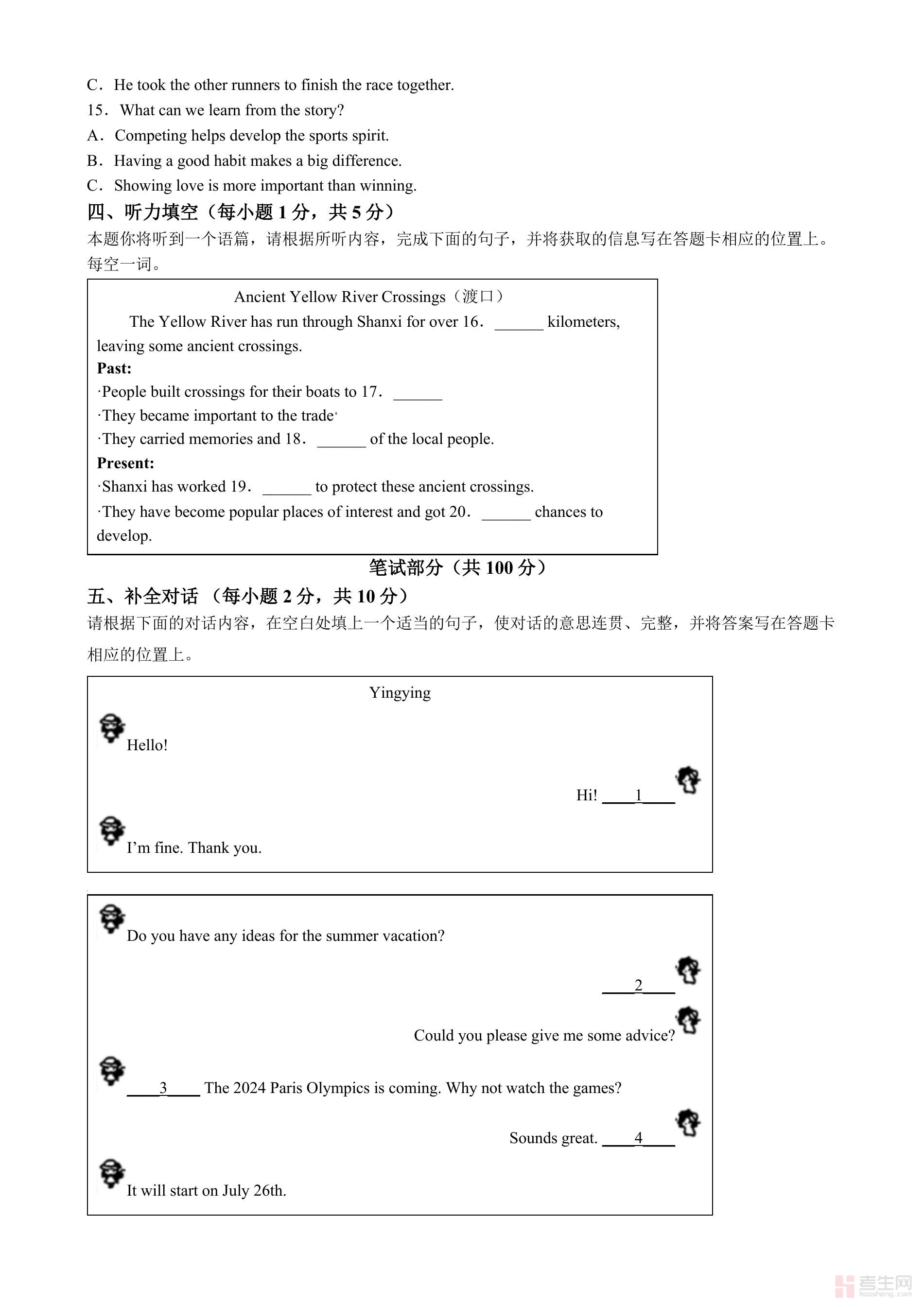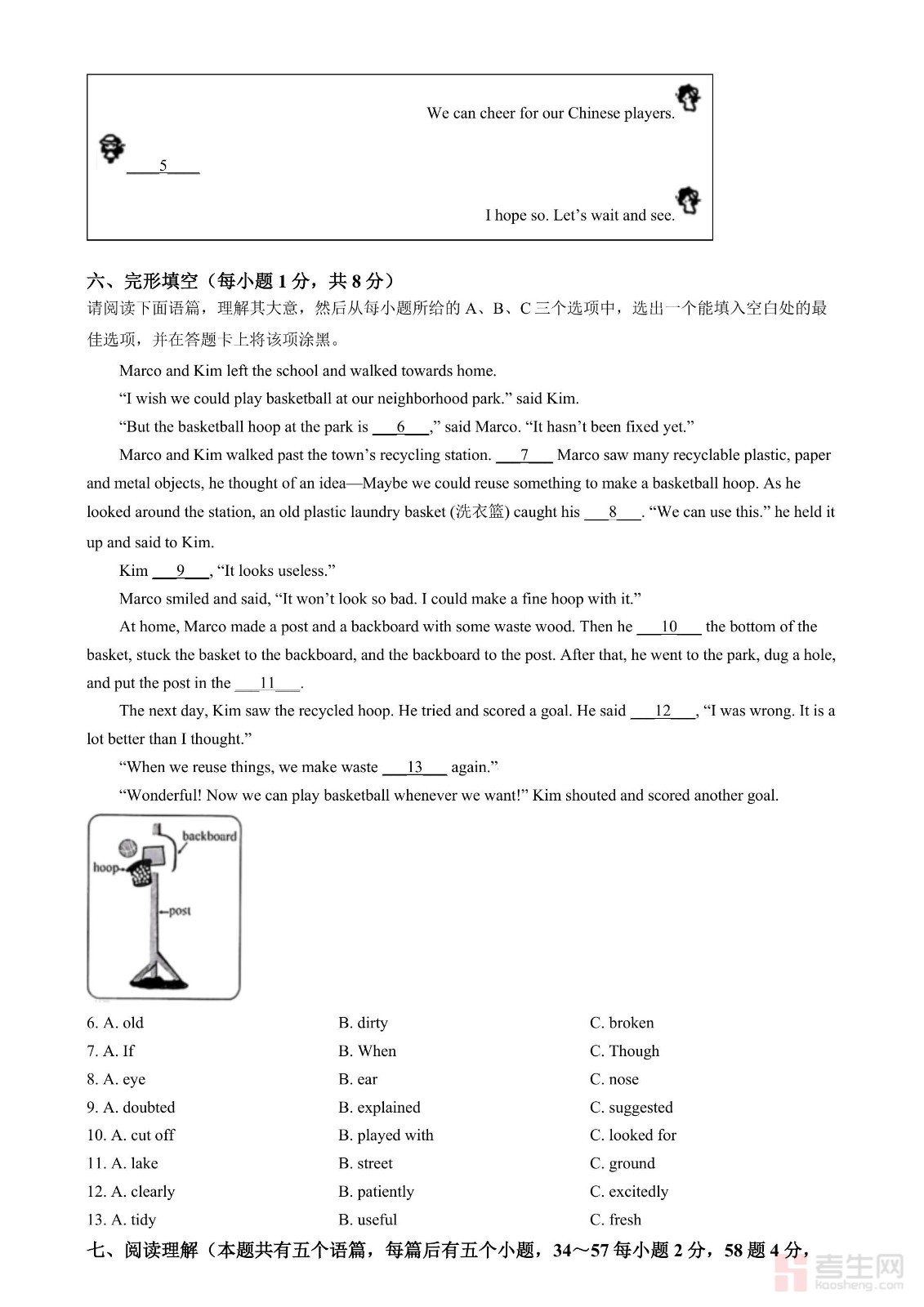 2024年湖北省中考英语真题原版及解析版(含听力文件)