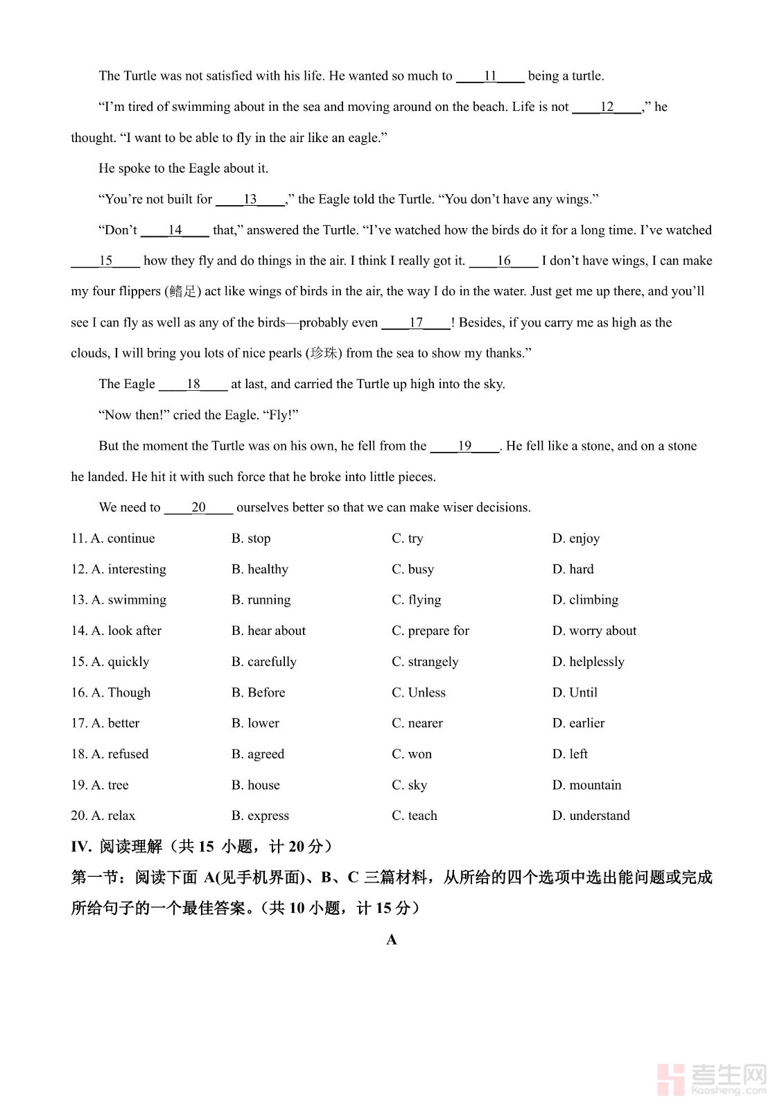 2024年河南省中考英语真题(原卷版)