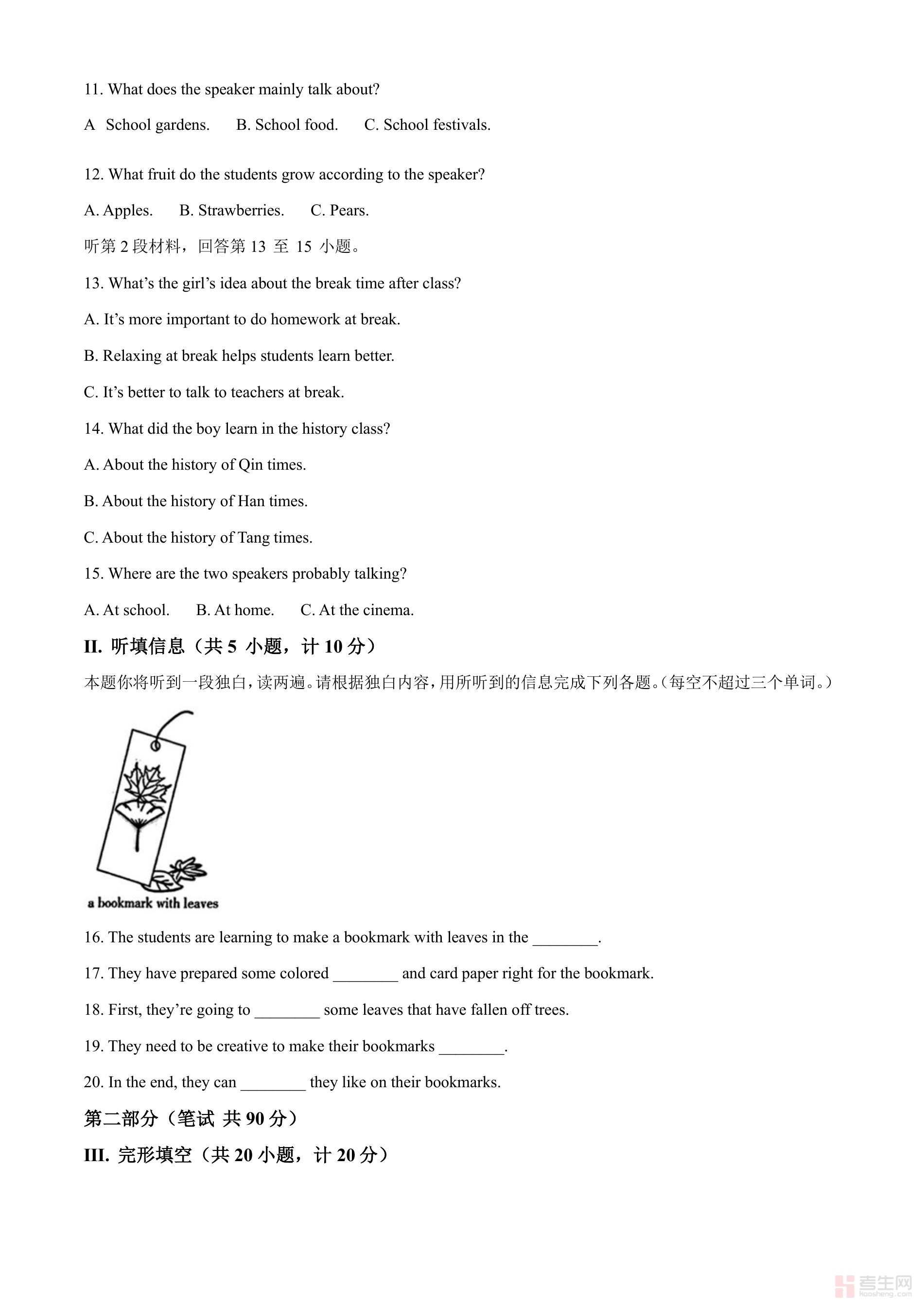 2024年湖北省中考英语真题(含英文)