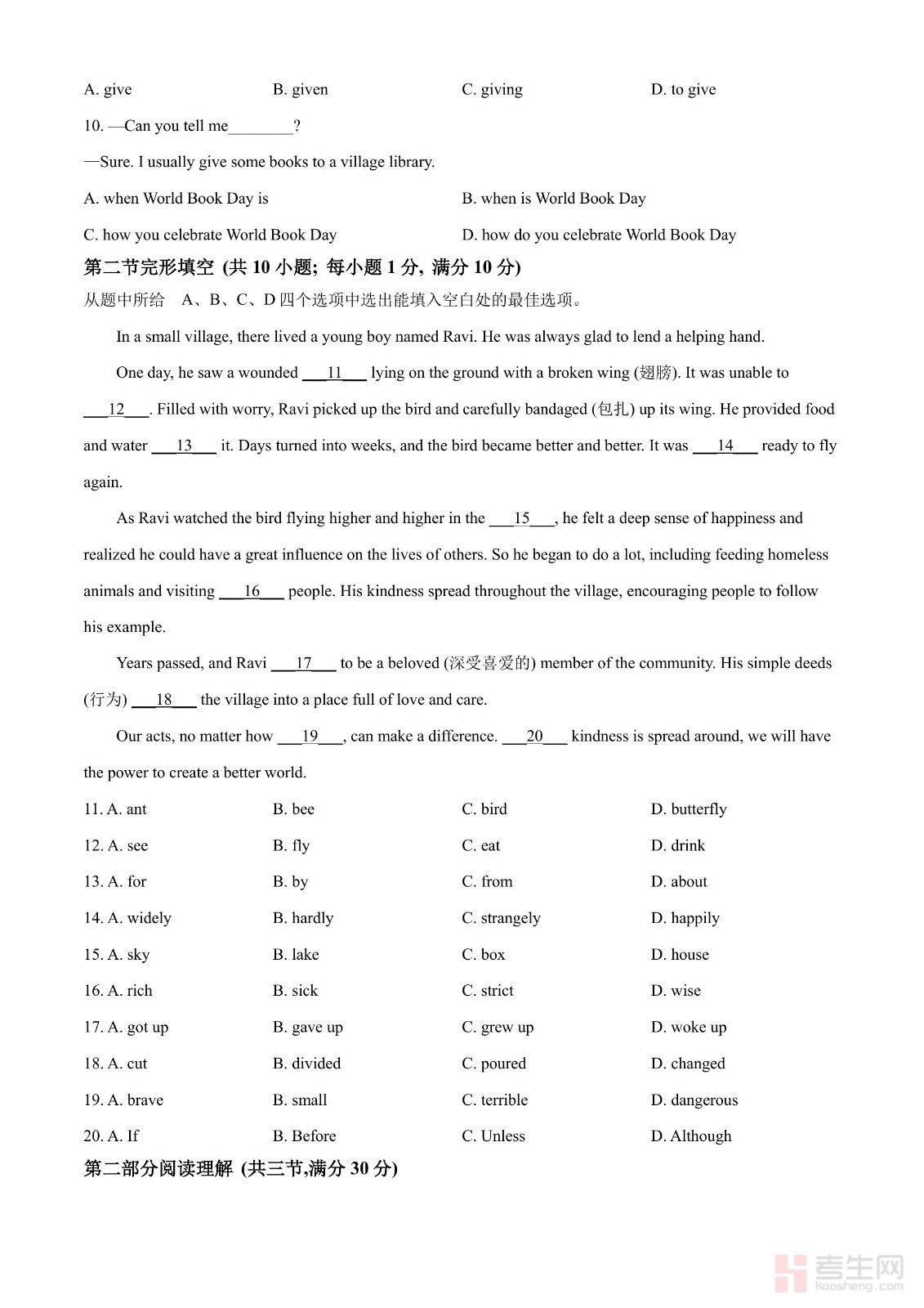2024年湖北省中考英语真题(含英文)