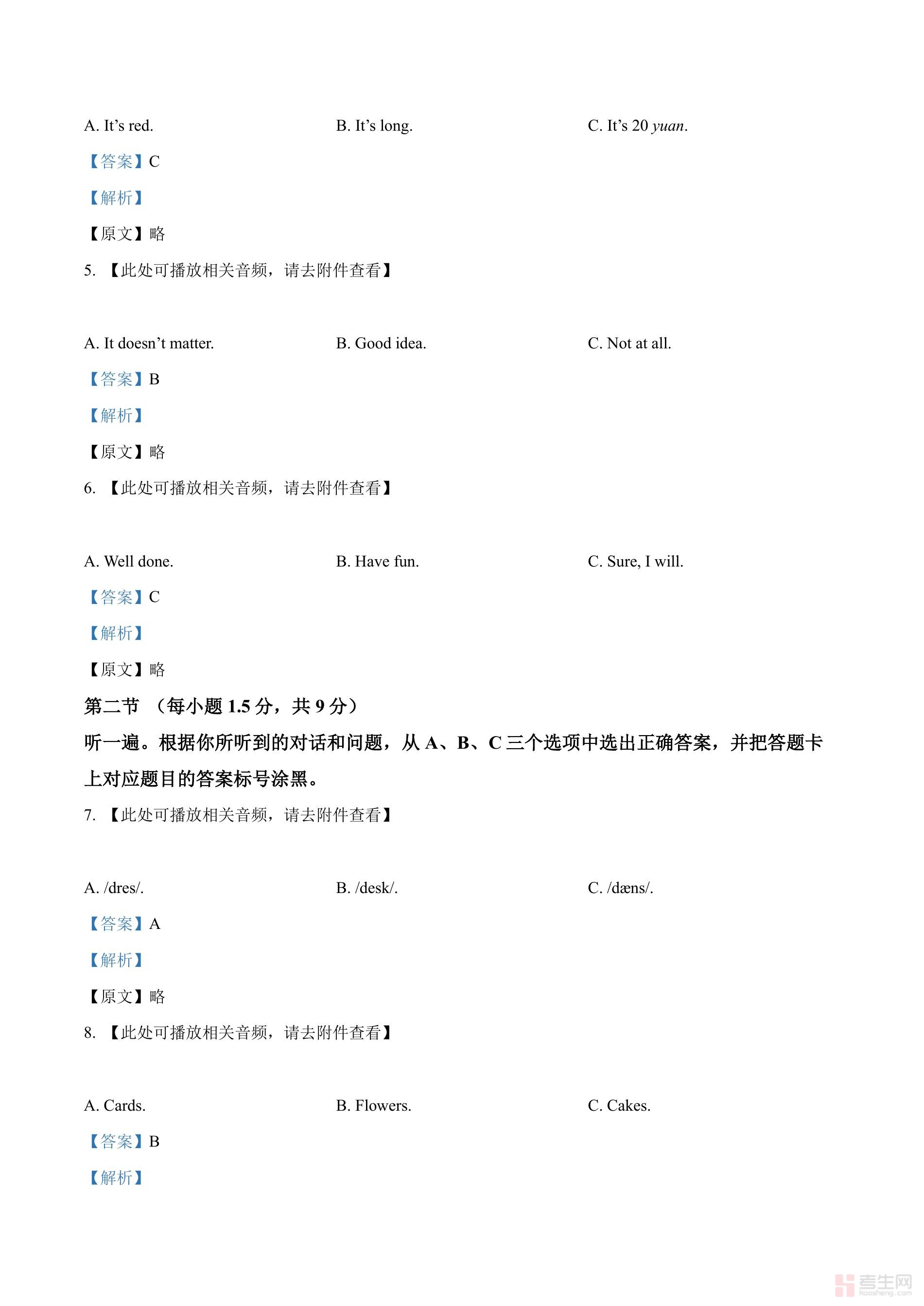 2024年湖北省中考英语真题原版及解析版(含听力文件)