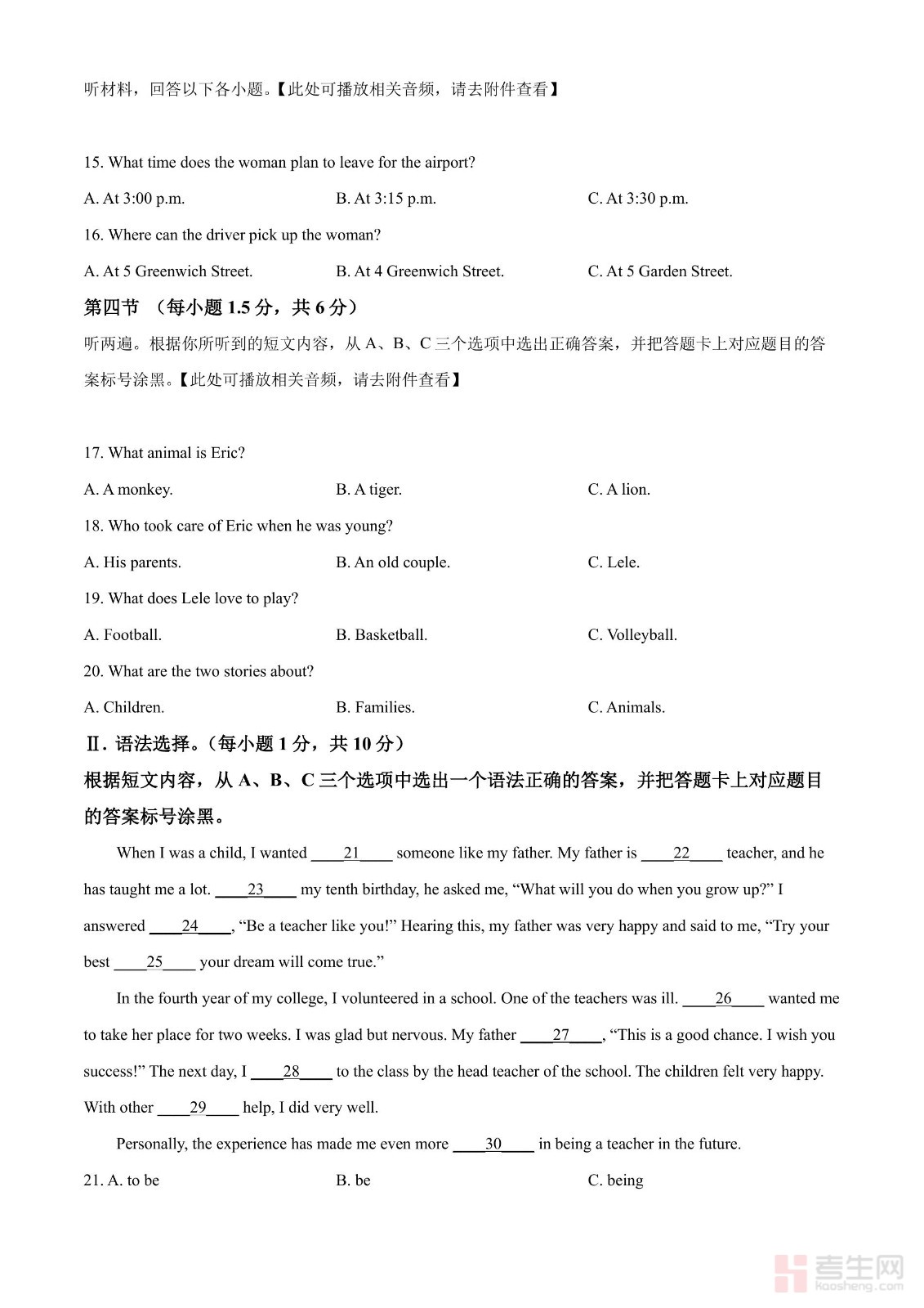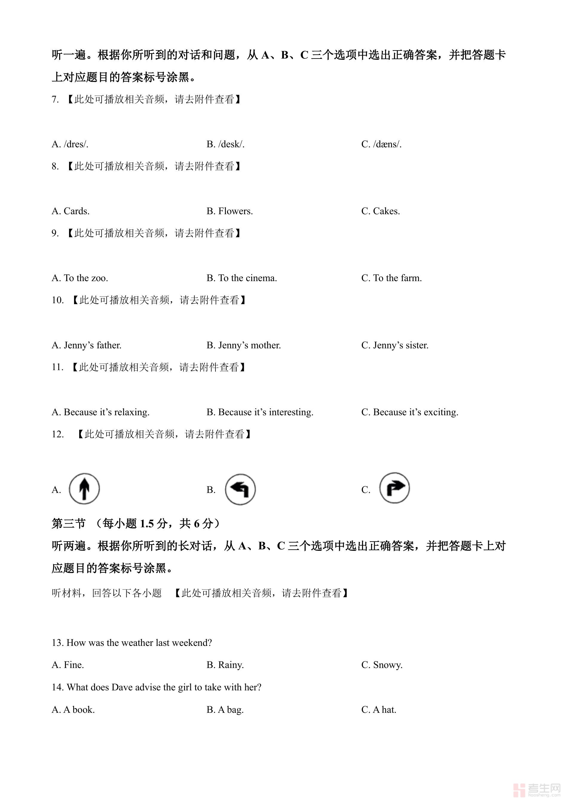 2024年重庆市中考英语真题(A卷)原卷含听力音频