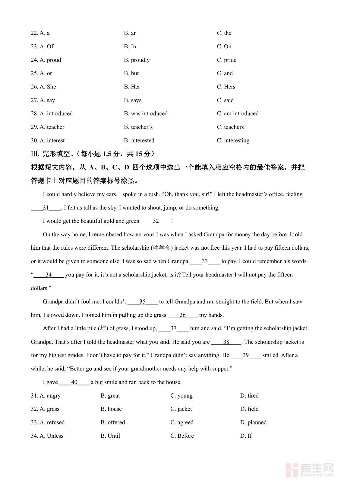 2024年河南省中考英语真题(原卷版)