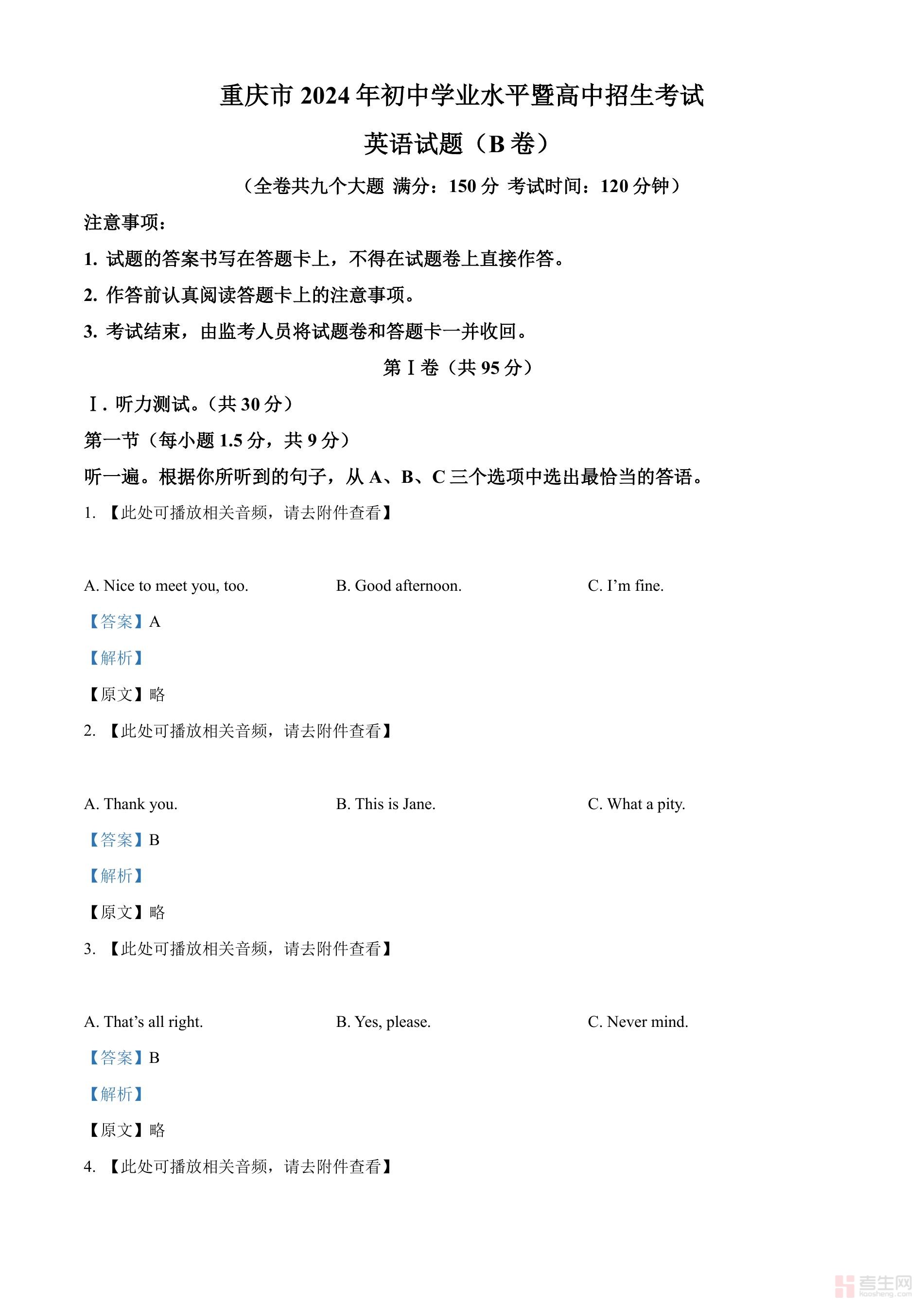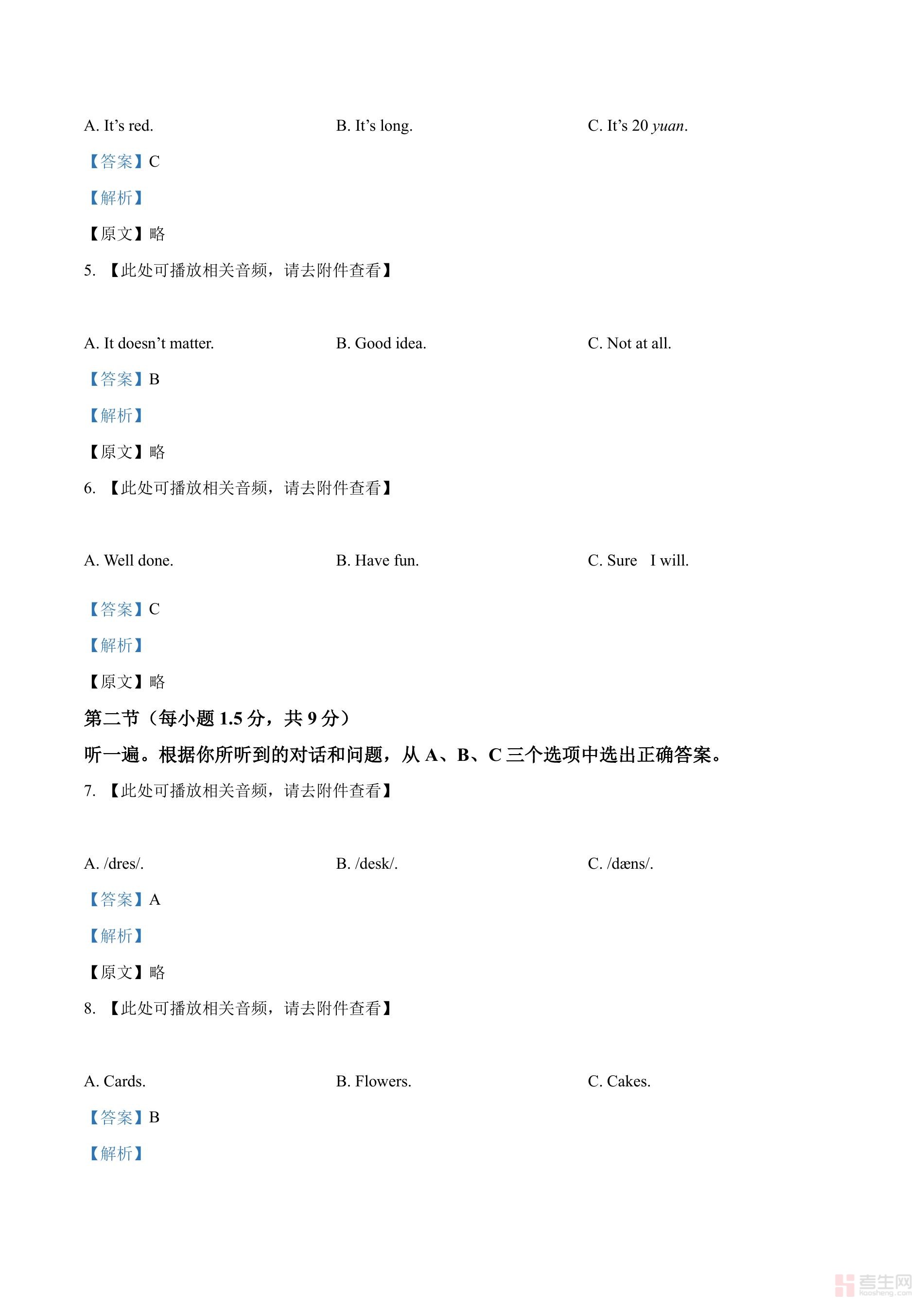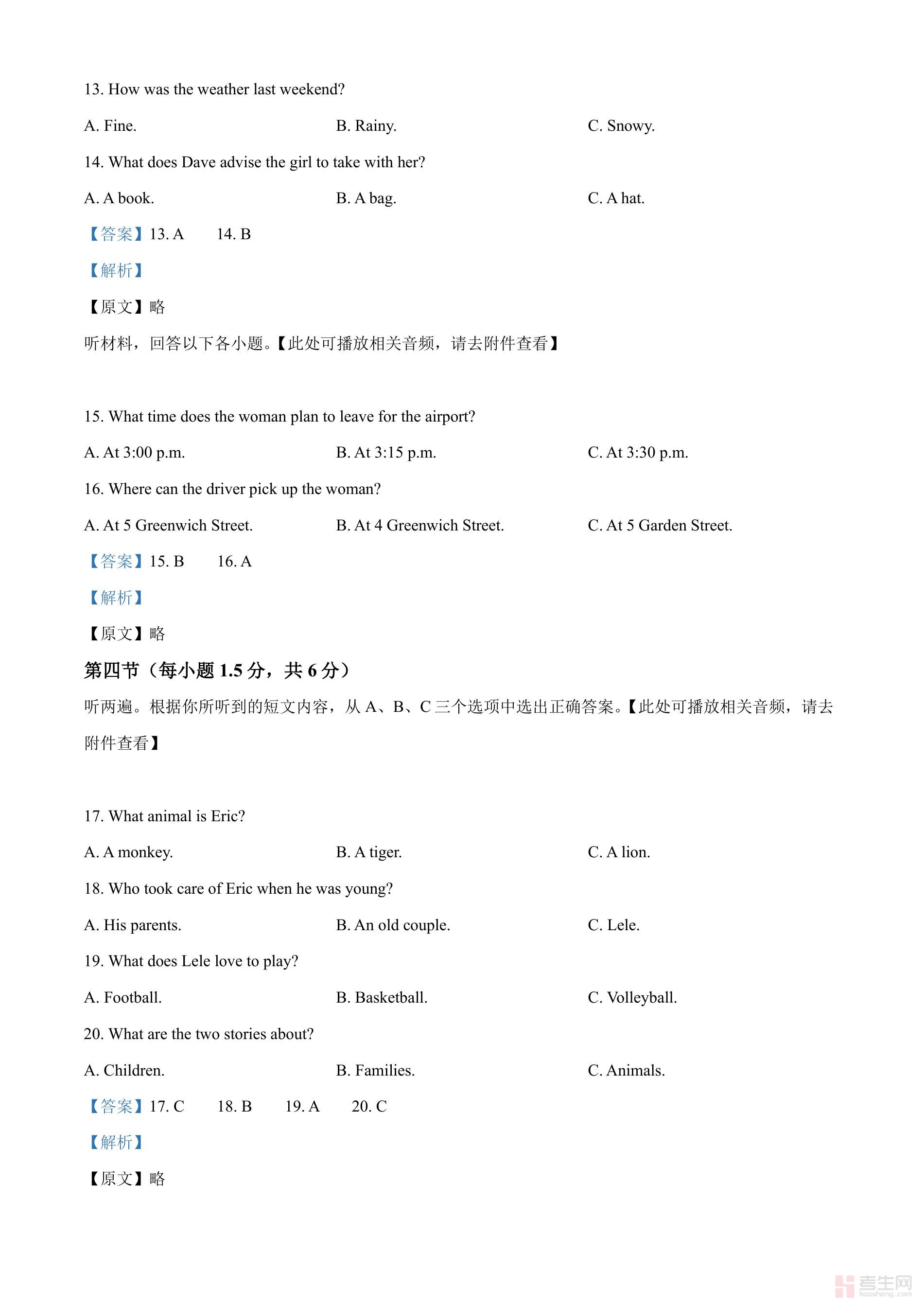2024年湖北省中考英语真题原版及解析版(含听力文件)