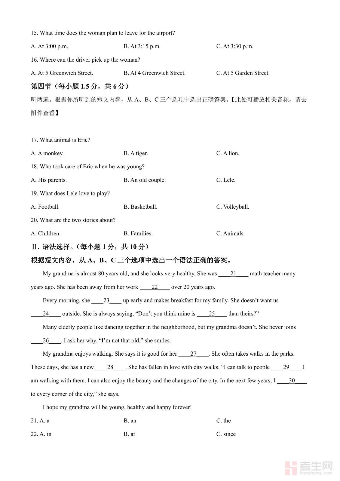 2024年江苏省常州市中考英语真题(原卷版)