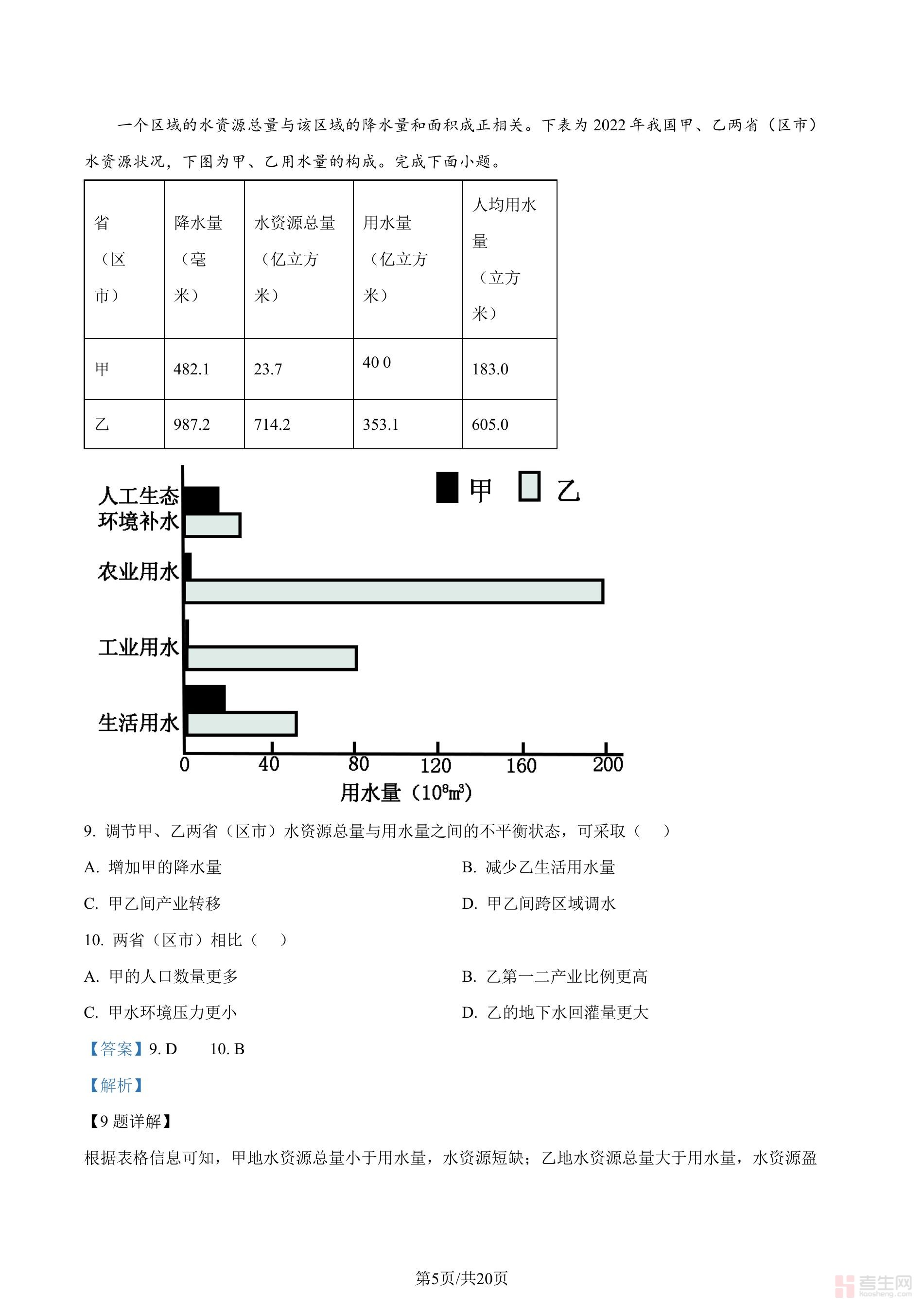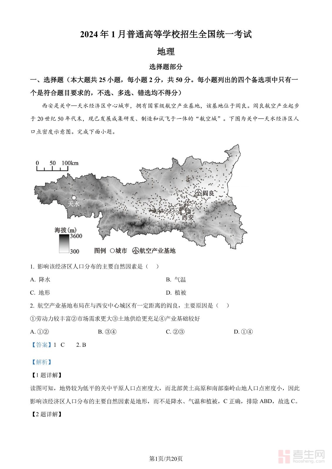 2024年高考地理试卷(浙江)(1月)(解析卷)
