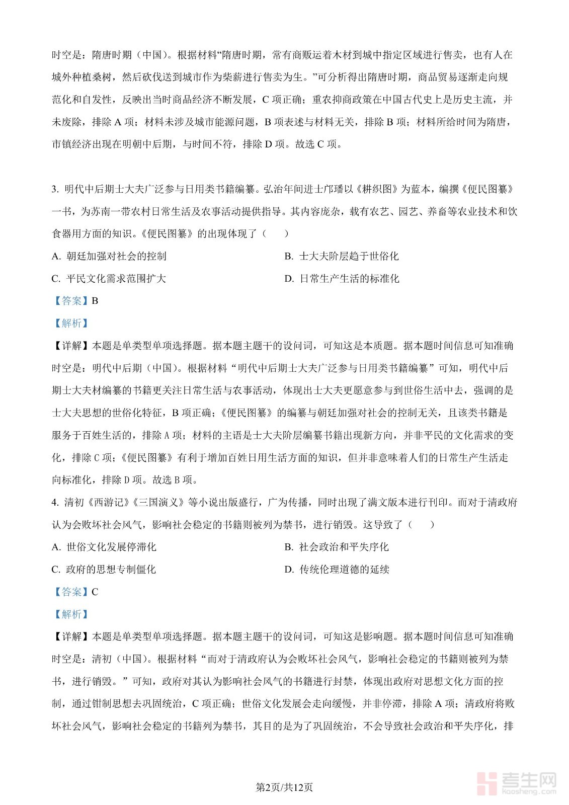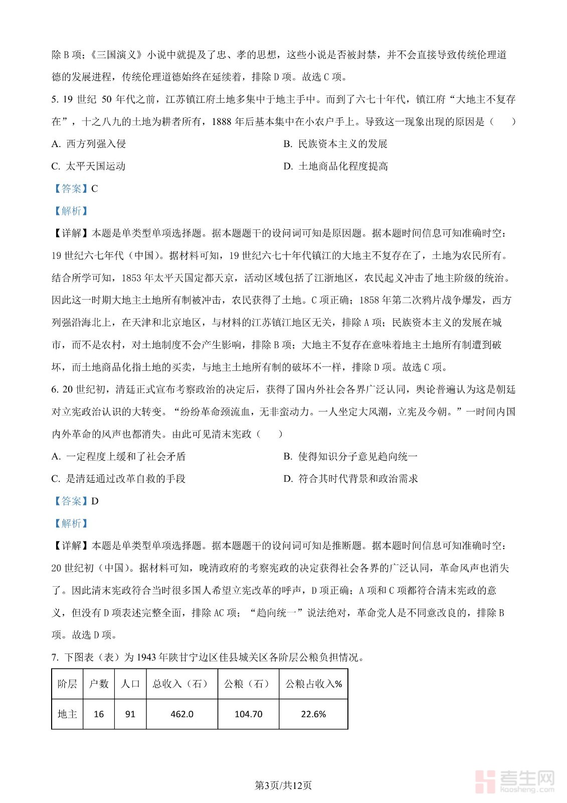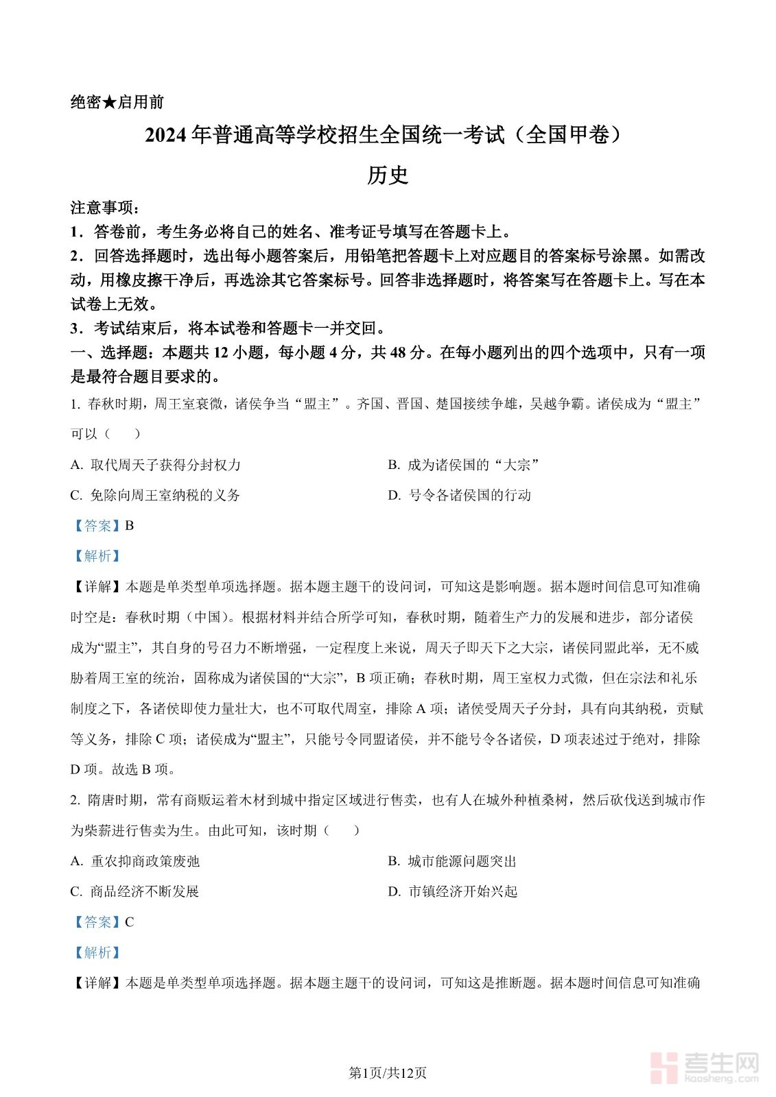 2024年高考历史试卷(全国甲卷)(解析卷)