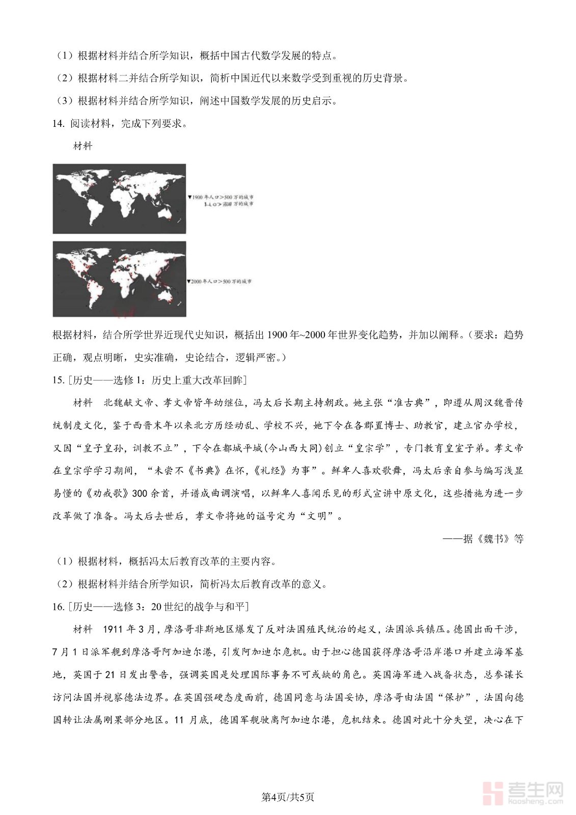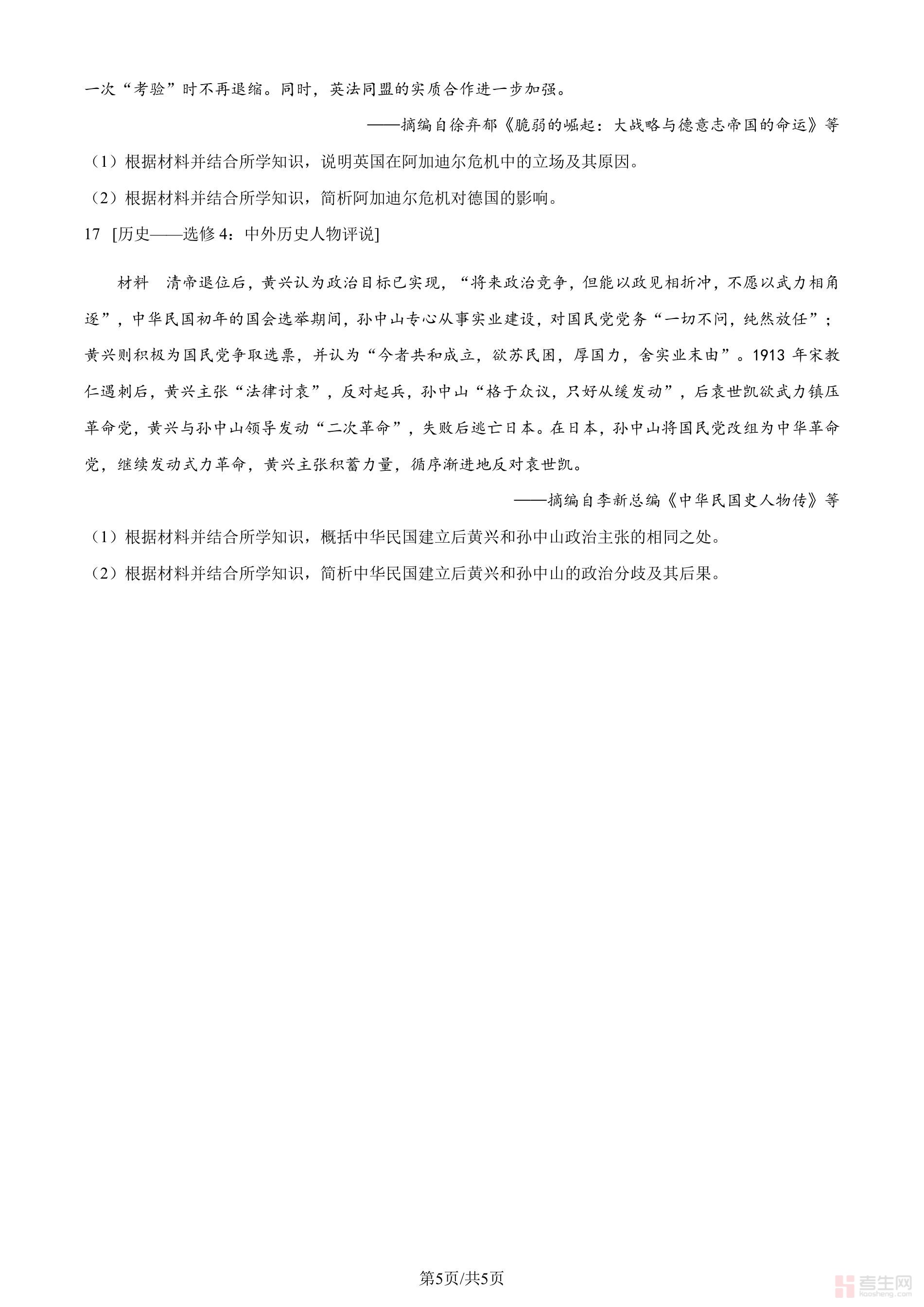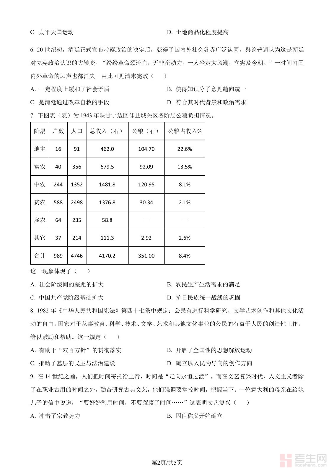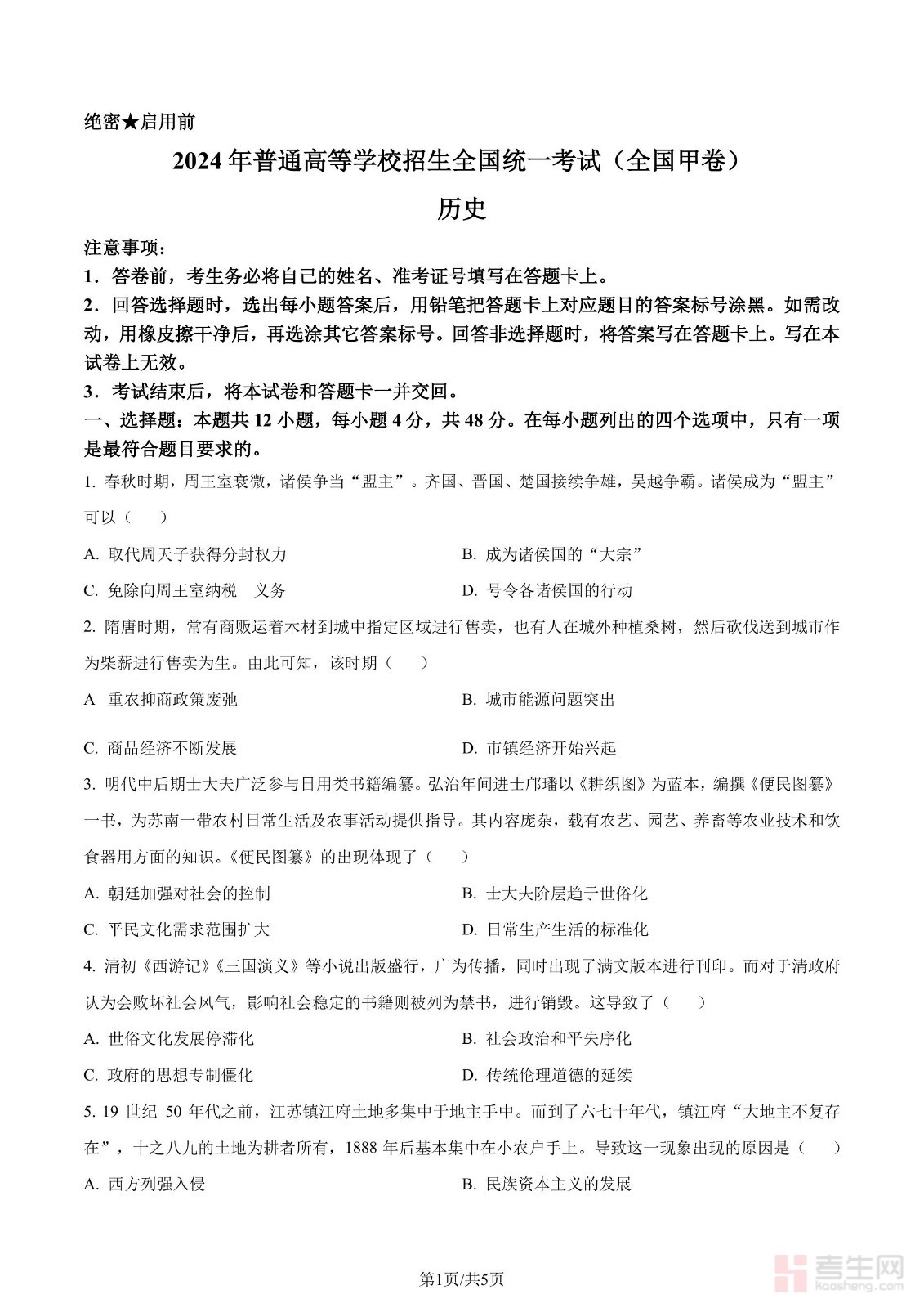 2024年高考历史试卷(全国甲卷)(空白卷)