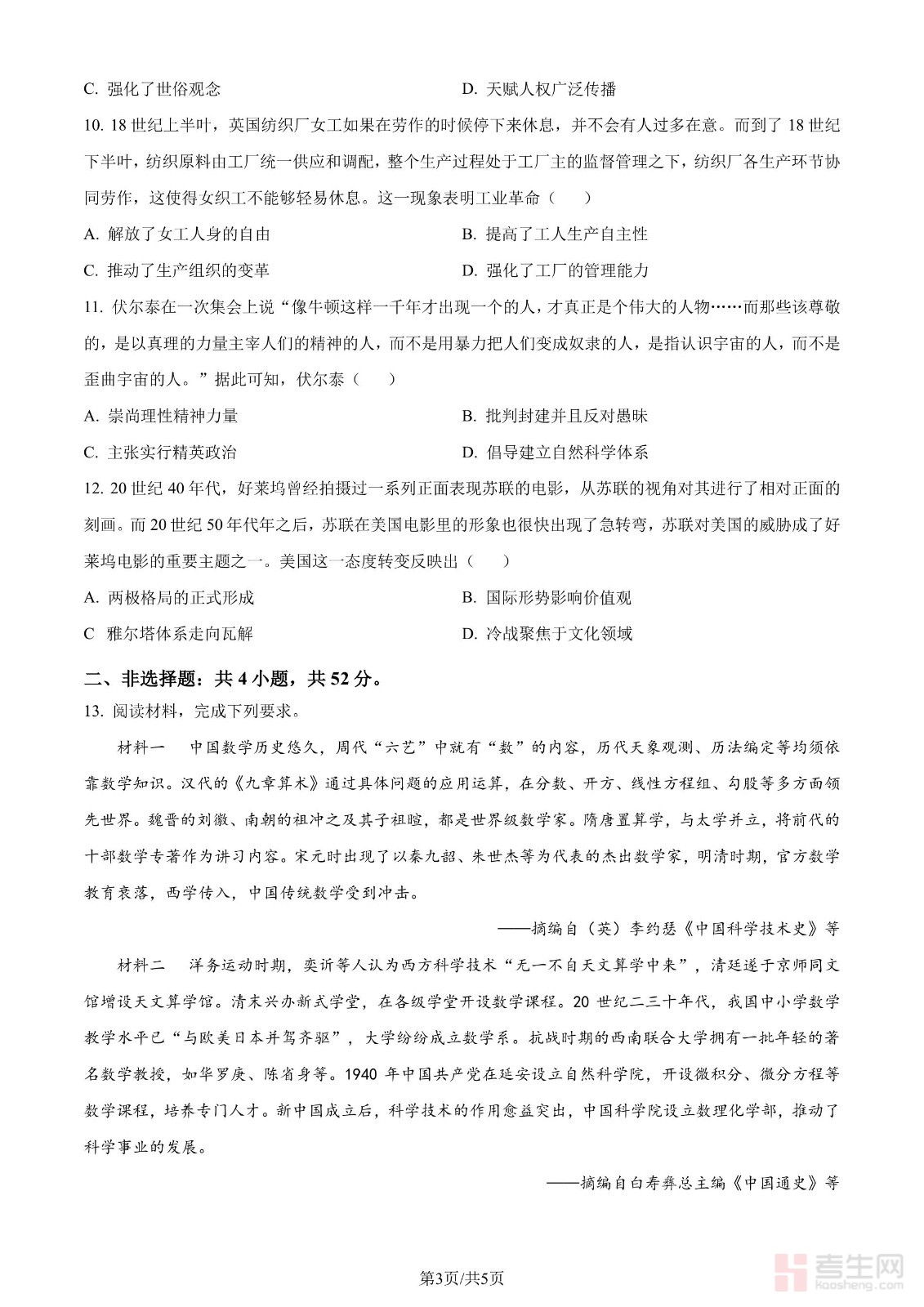 2024年高考历史试卷(全国甲卷)(解析卷)