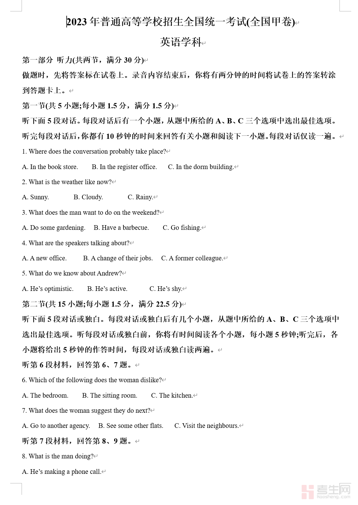 2023年新课标全国Ⅰ卷英语真题(解析版)