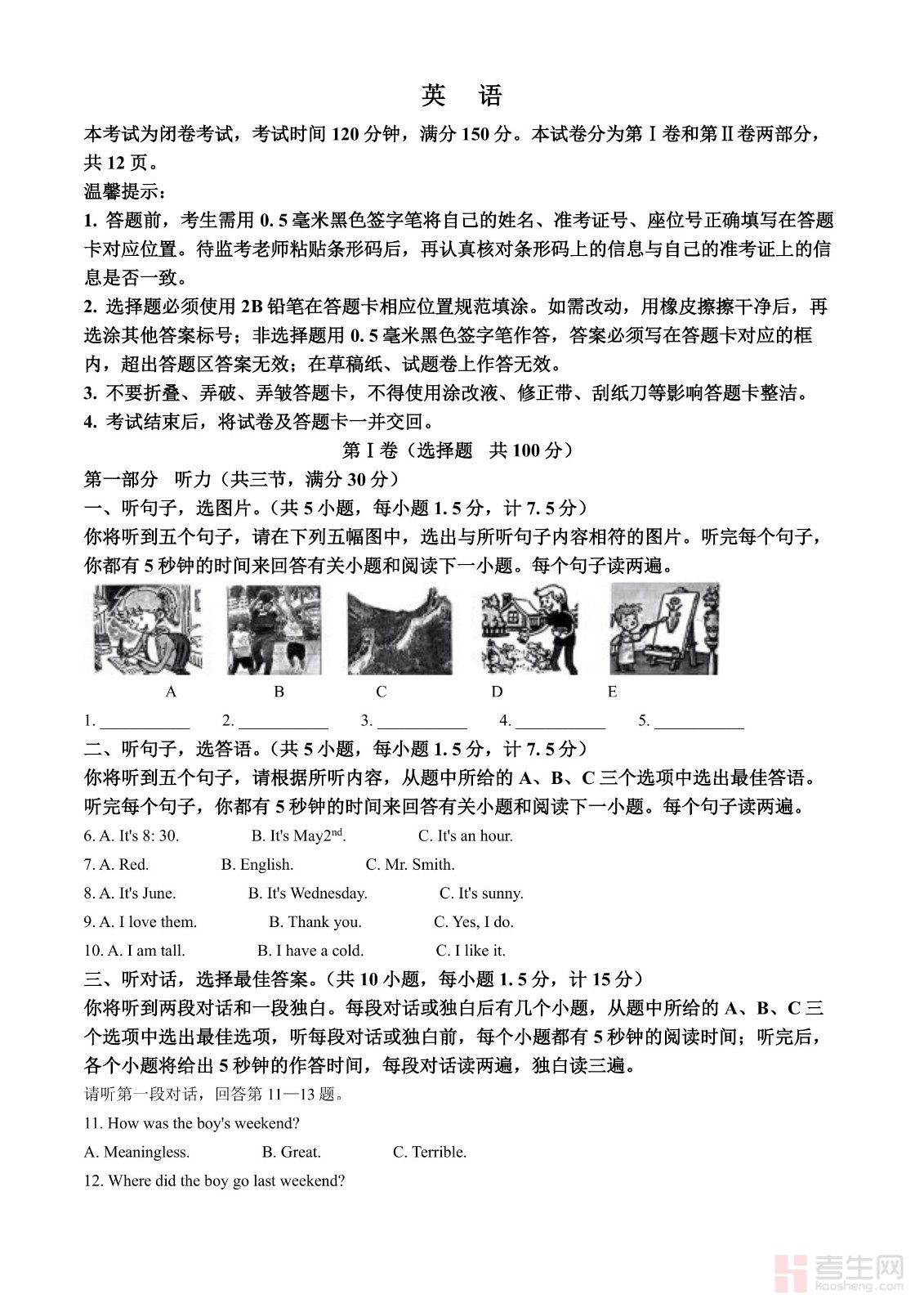 2024年湖北省中考英语真题原版及解析版(含听力文件)