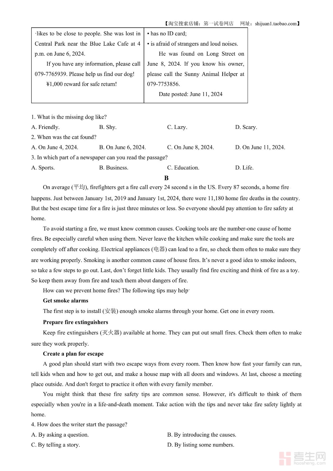 2024年湖南省长沙市中考英语真题(原卷版)