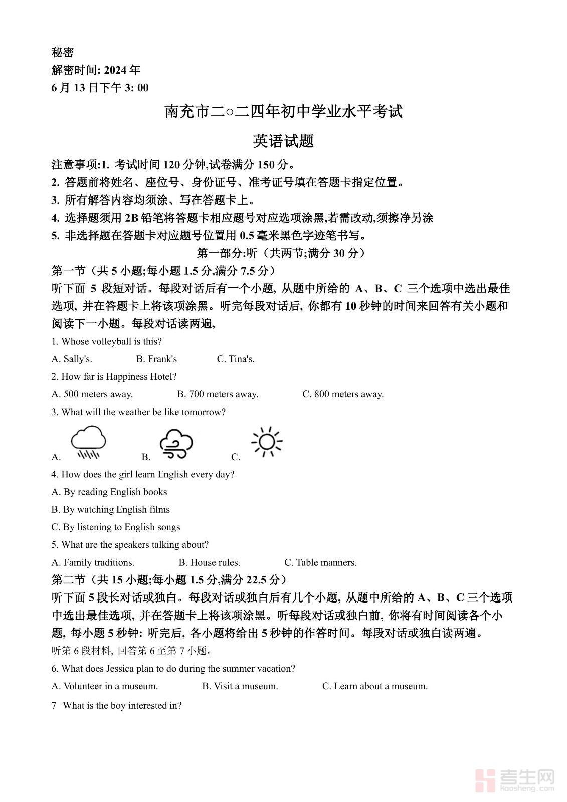 2024年湖北省中考英语真题原版及解析版(含听力文件)