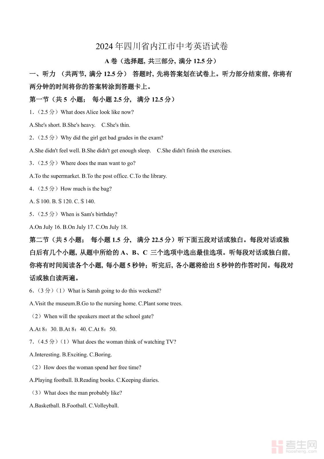 2024年湖北省中考英语真题原版及解析版(含听力文件)