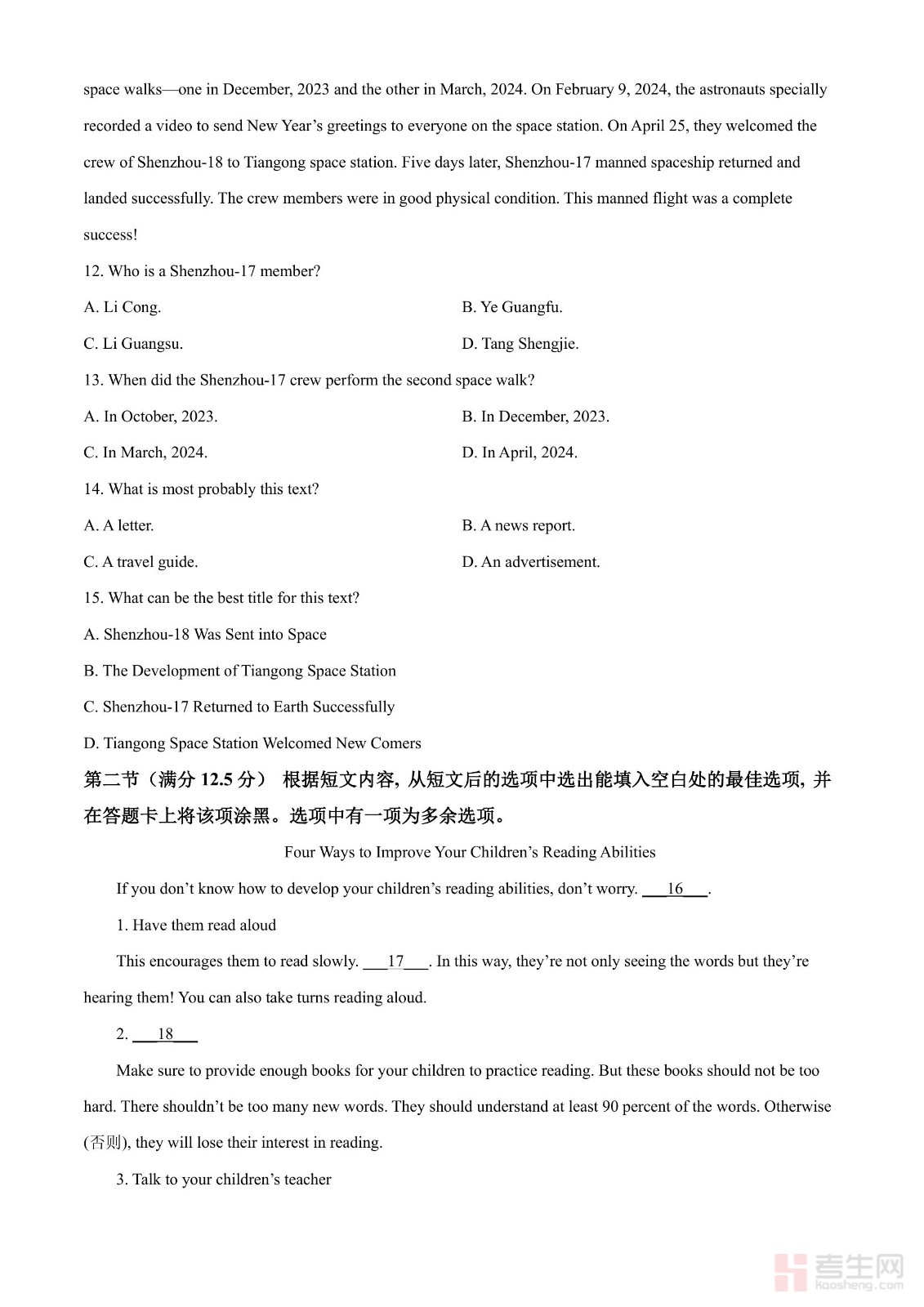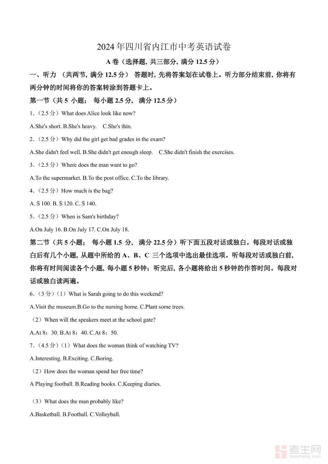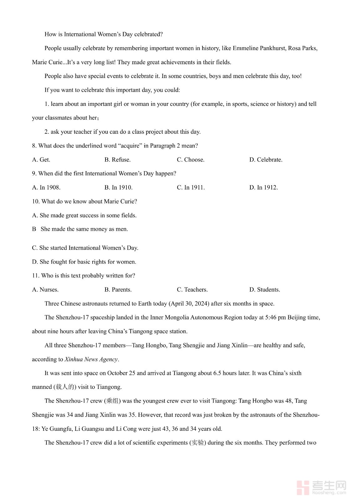 2024年湖北省中考英语真题原版及解析版(含听力文件)