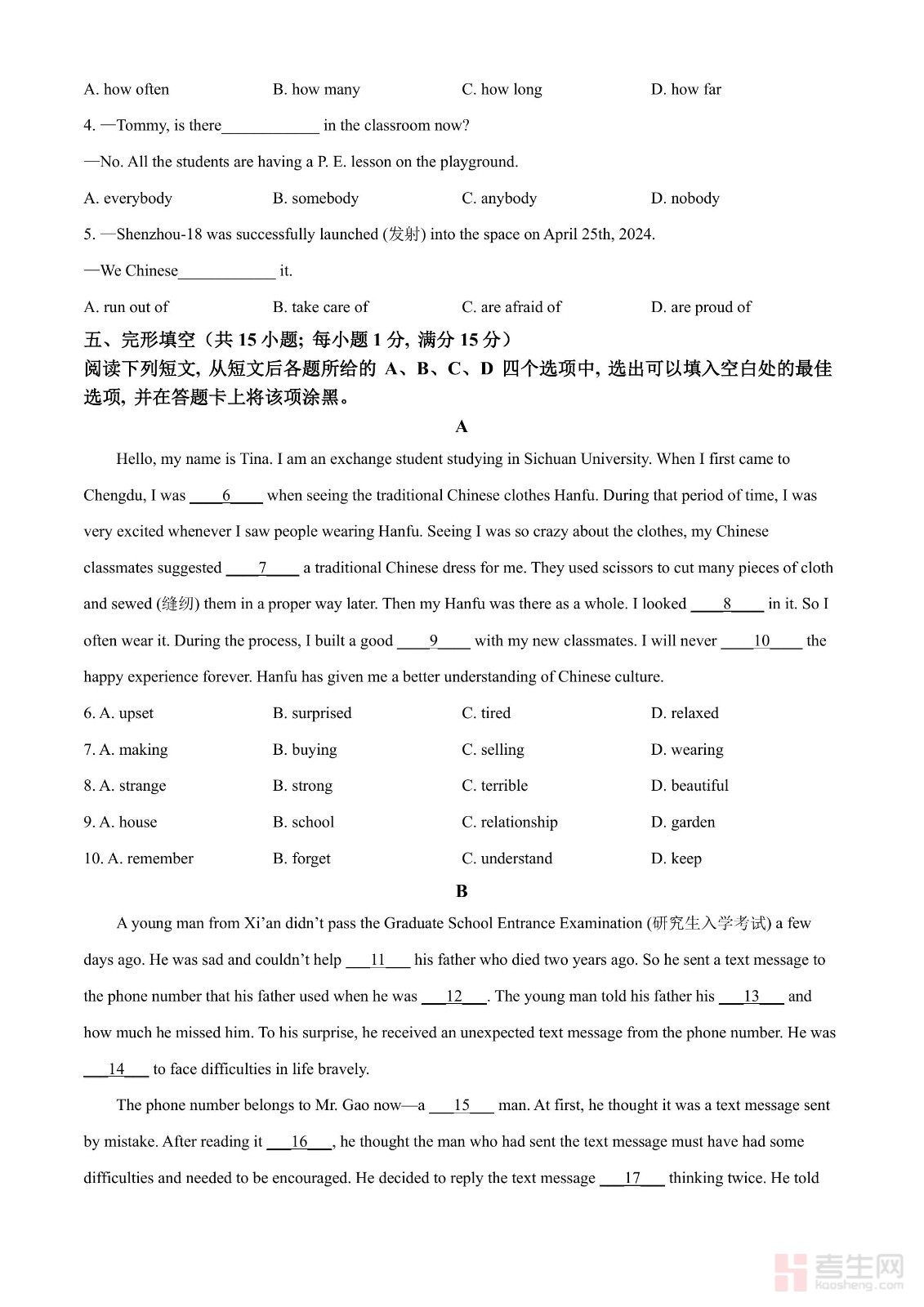 2024年湖北省中考英语真题原版及解析版(含听力文件)