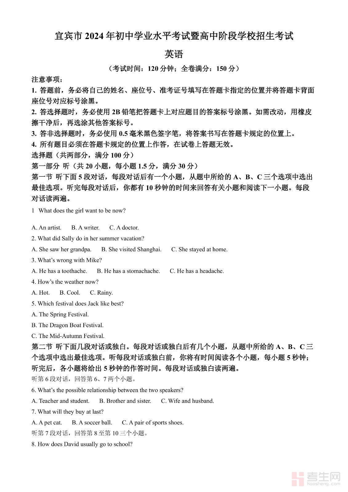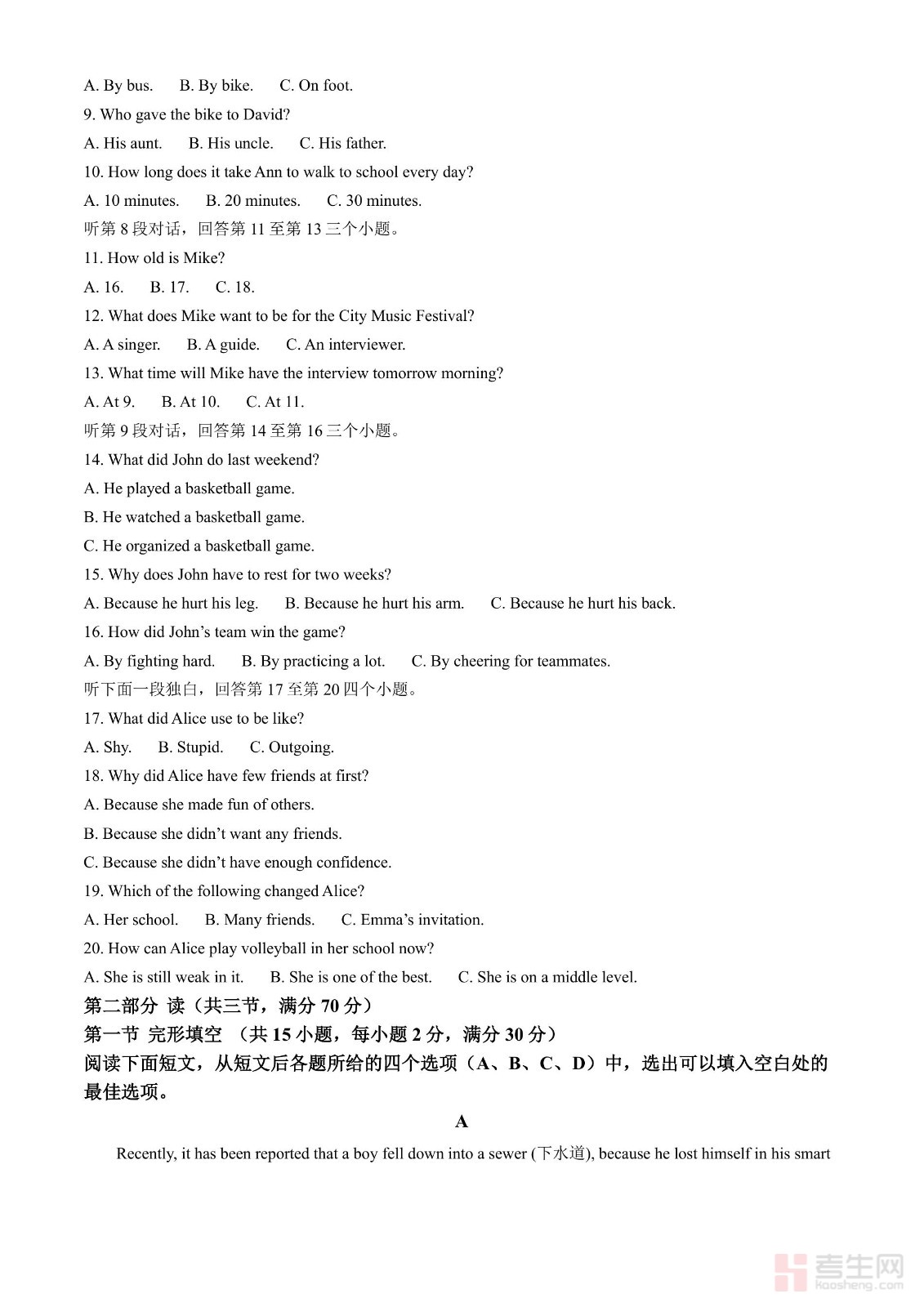 2024年湖北省中考英语真题原版及解析版(含听力文件)
