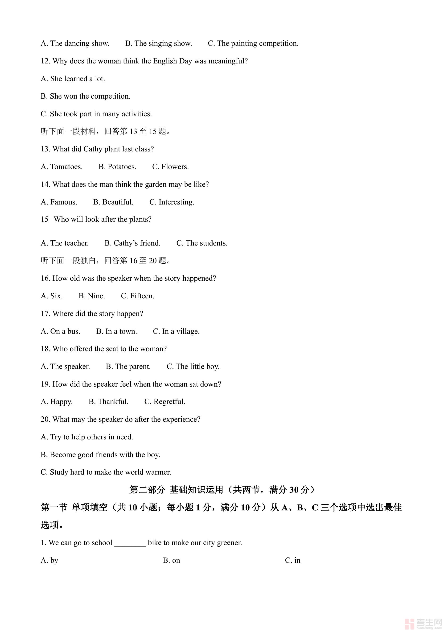 年初中学业水平考试暨高中阶段学校招生考试英语