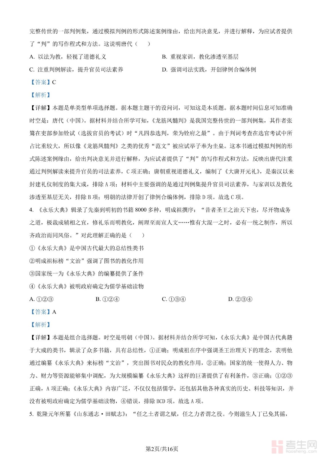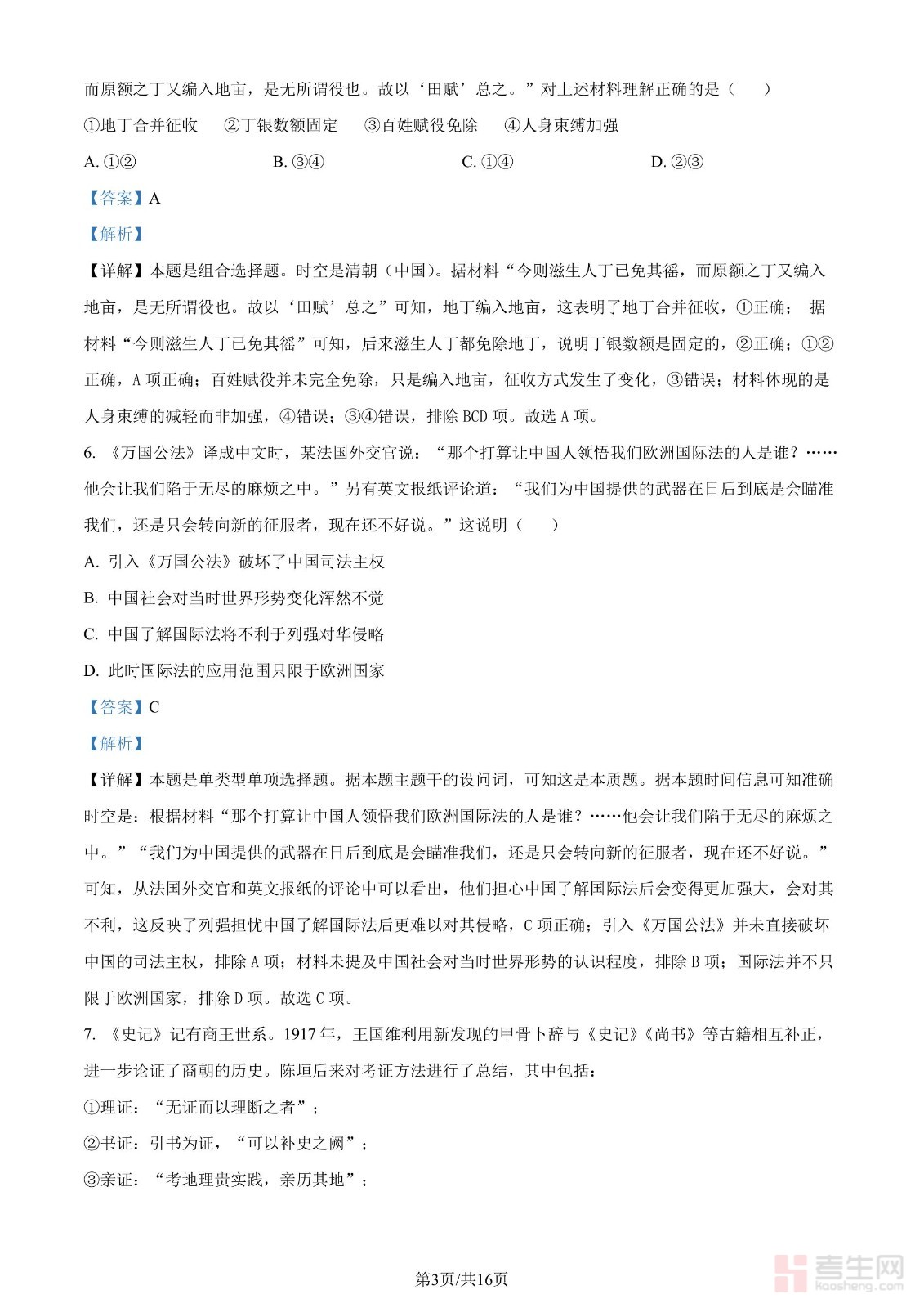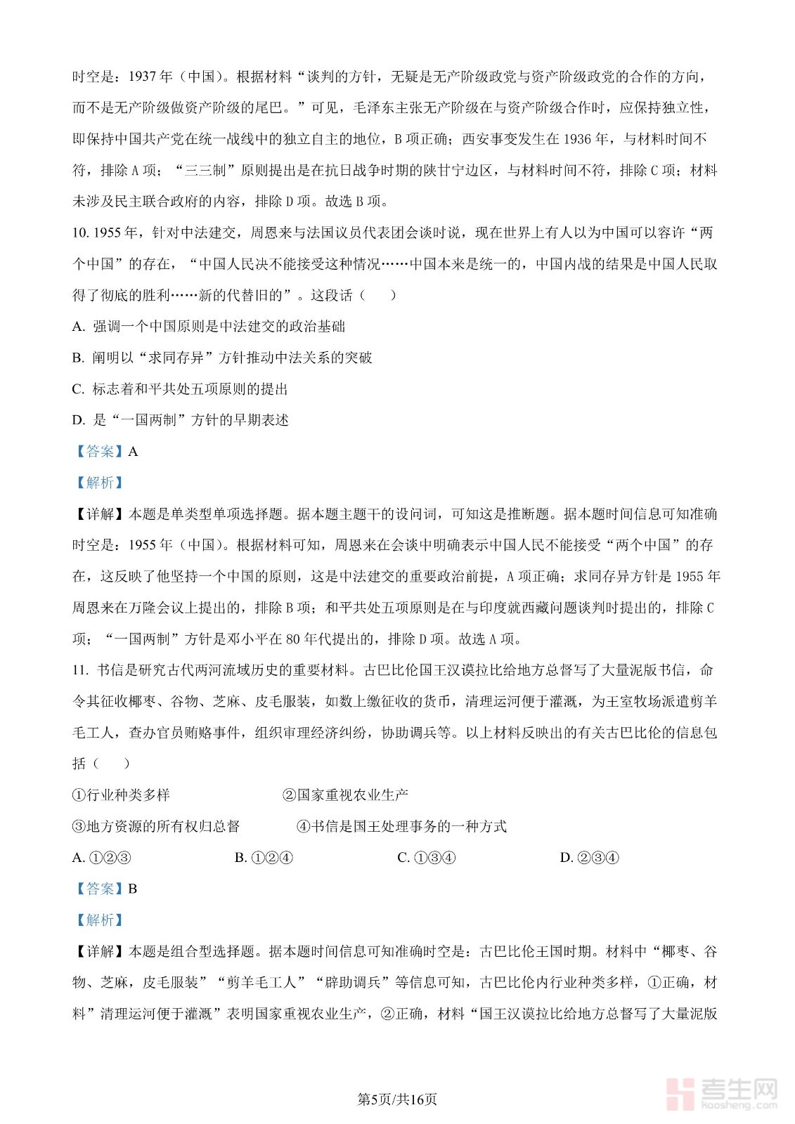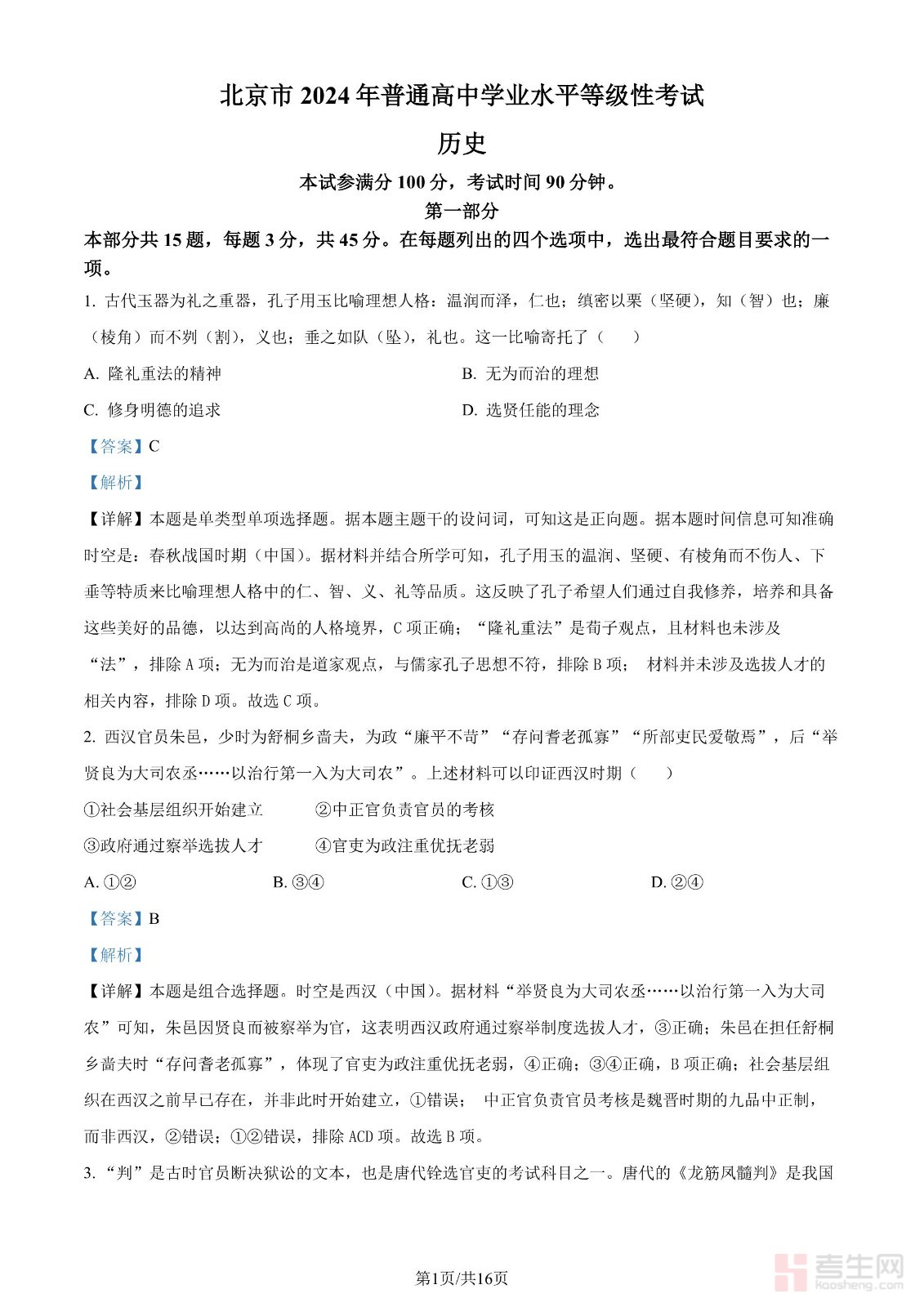 2024年高考历史试卷(北京)(解析卷)