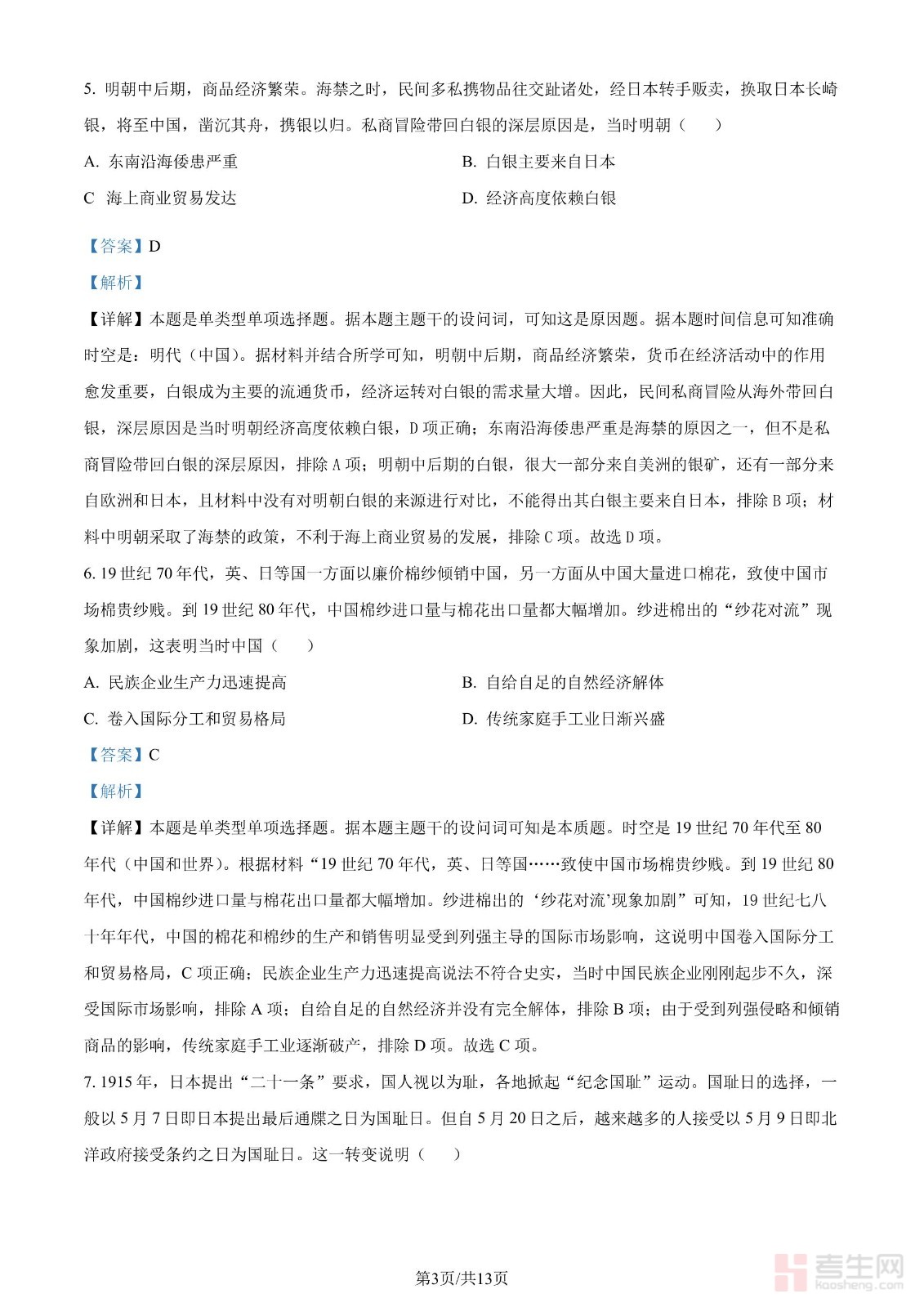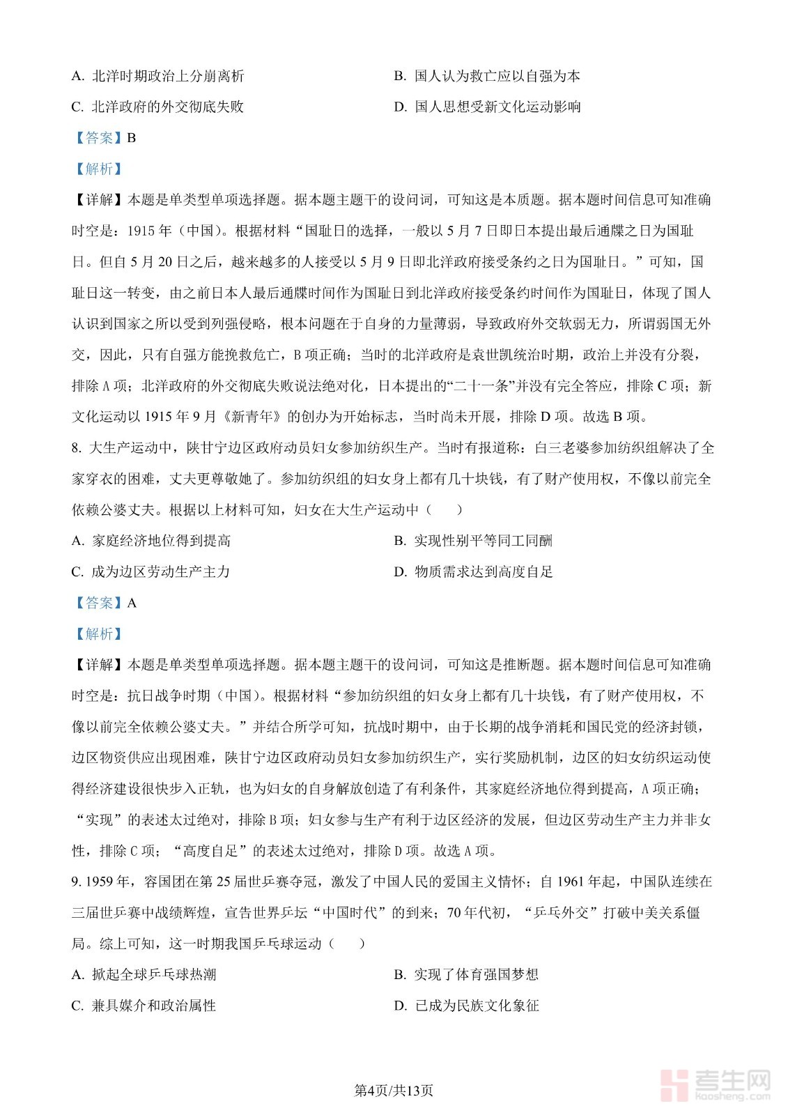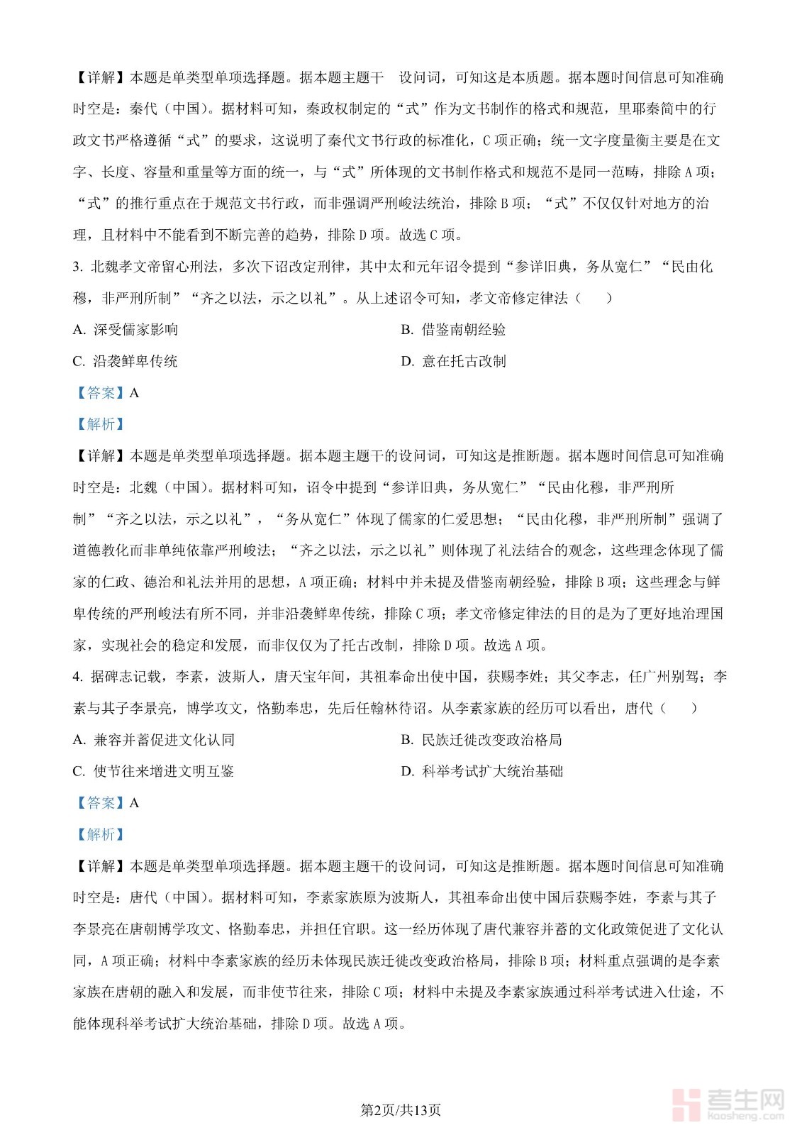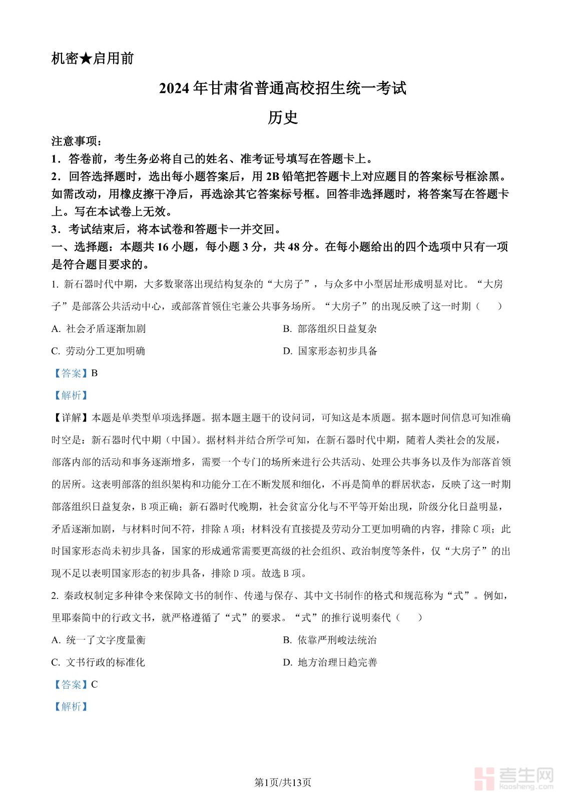 2024年高考历史试卷(甘肃)(解析卷)