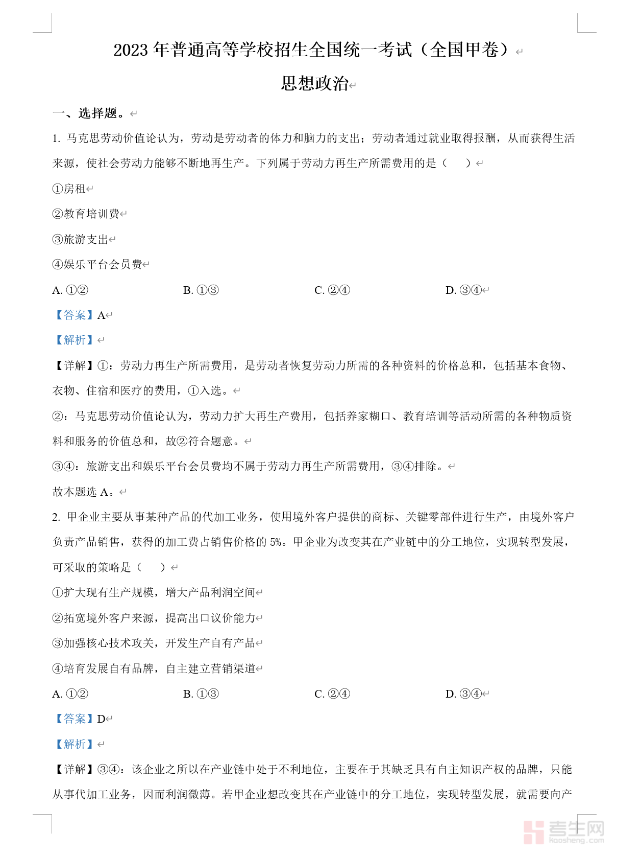 2023年新课标全国Ⅰ卷英语真题(解析版)