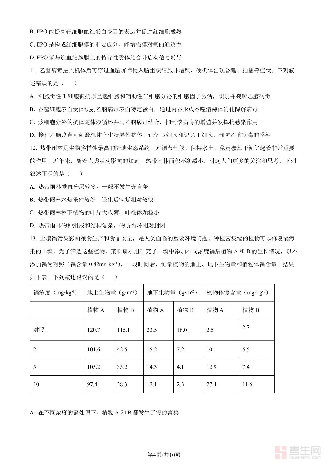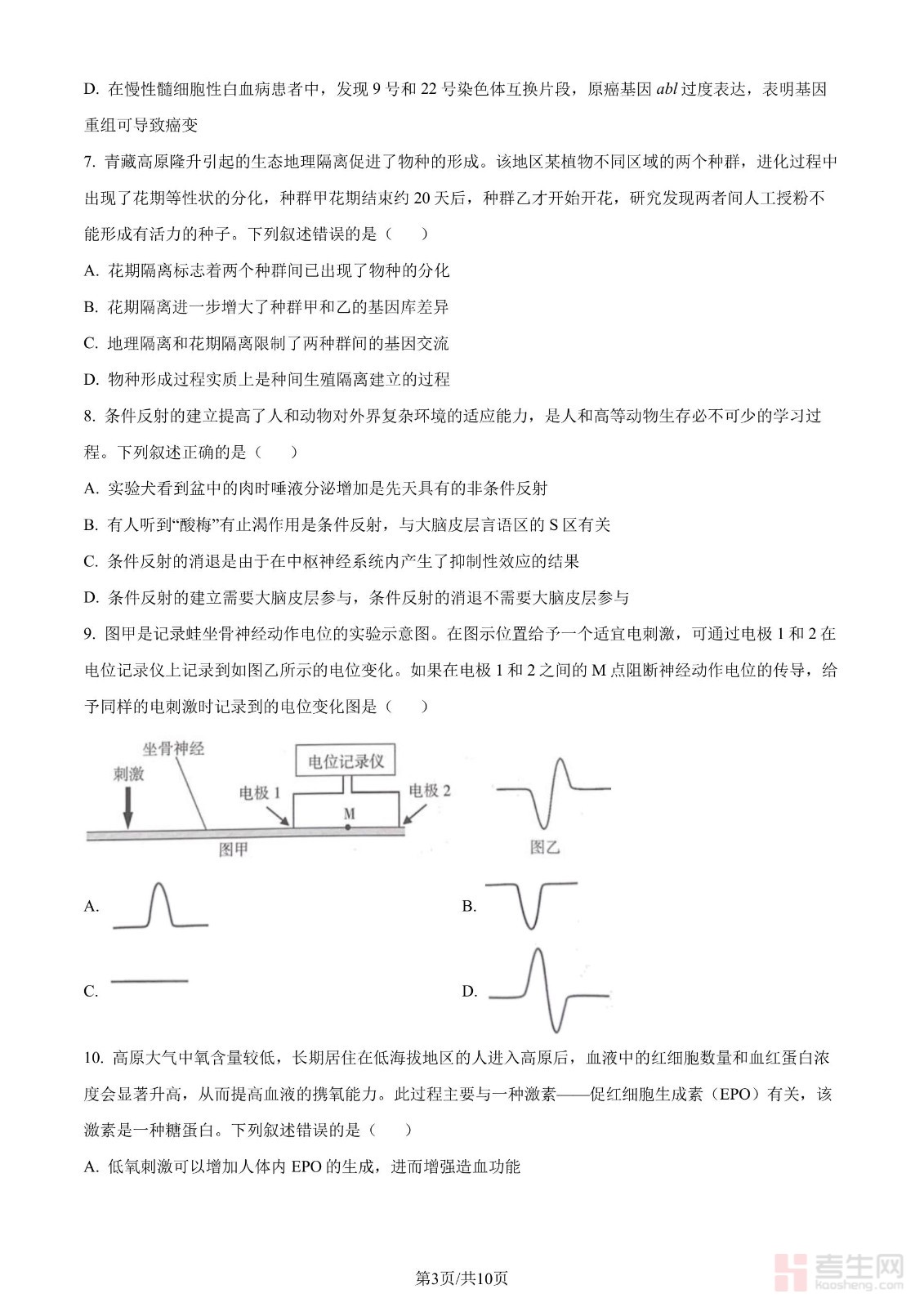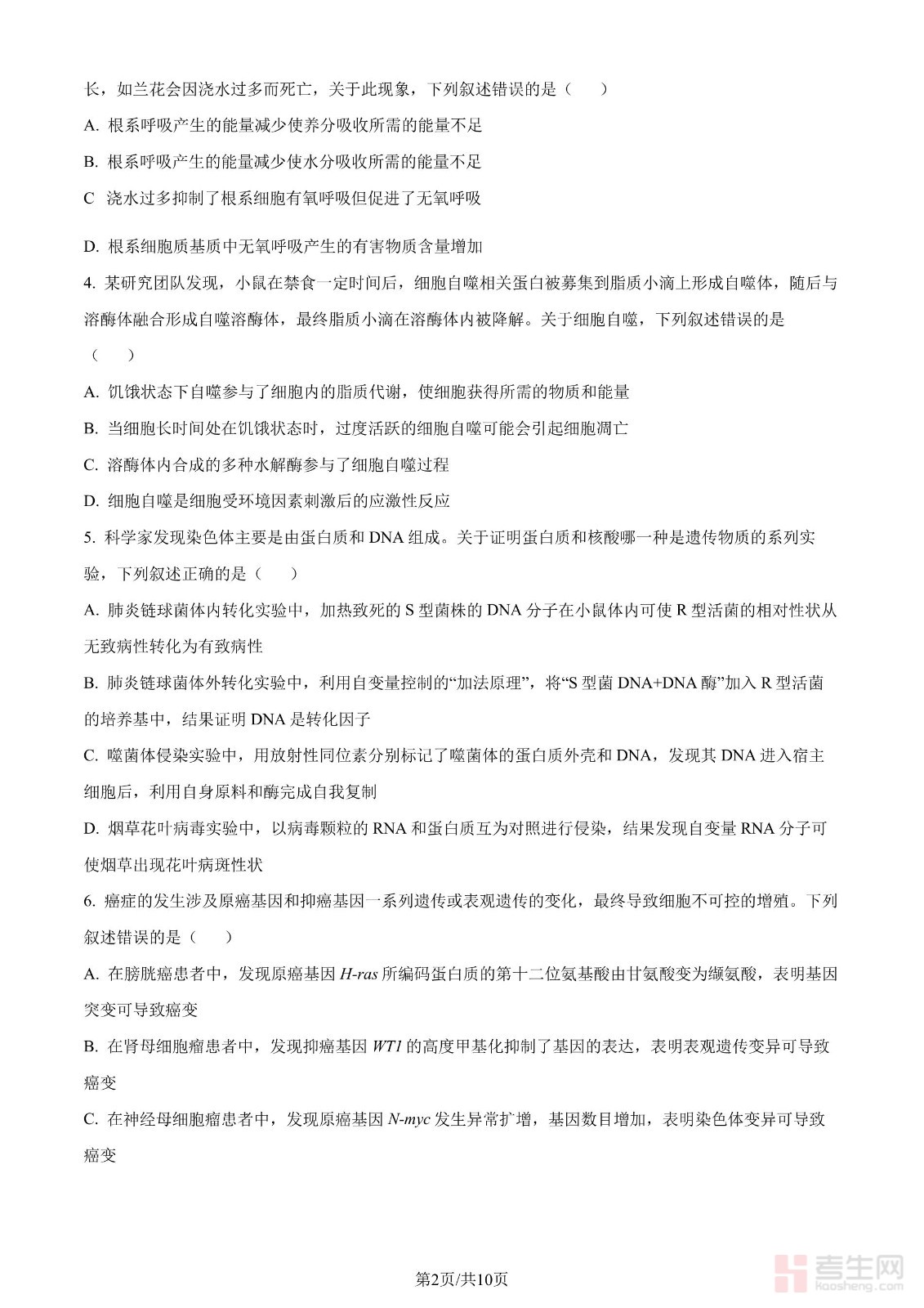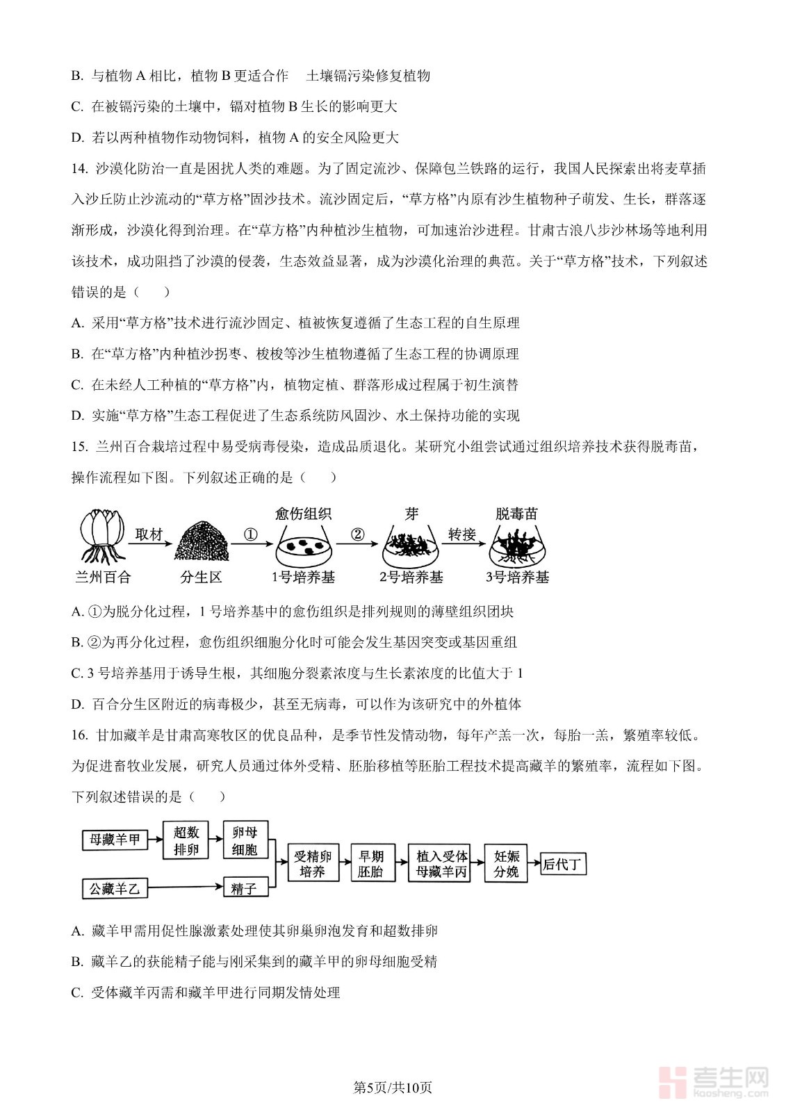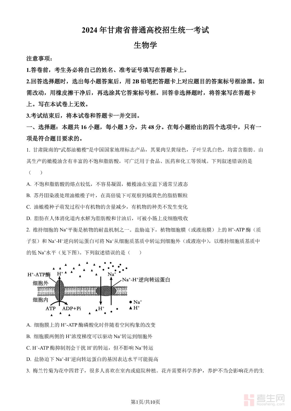 2024年高考生物试卷(甘肃)(空白卷)