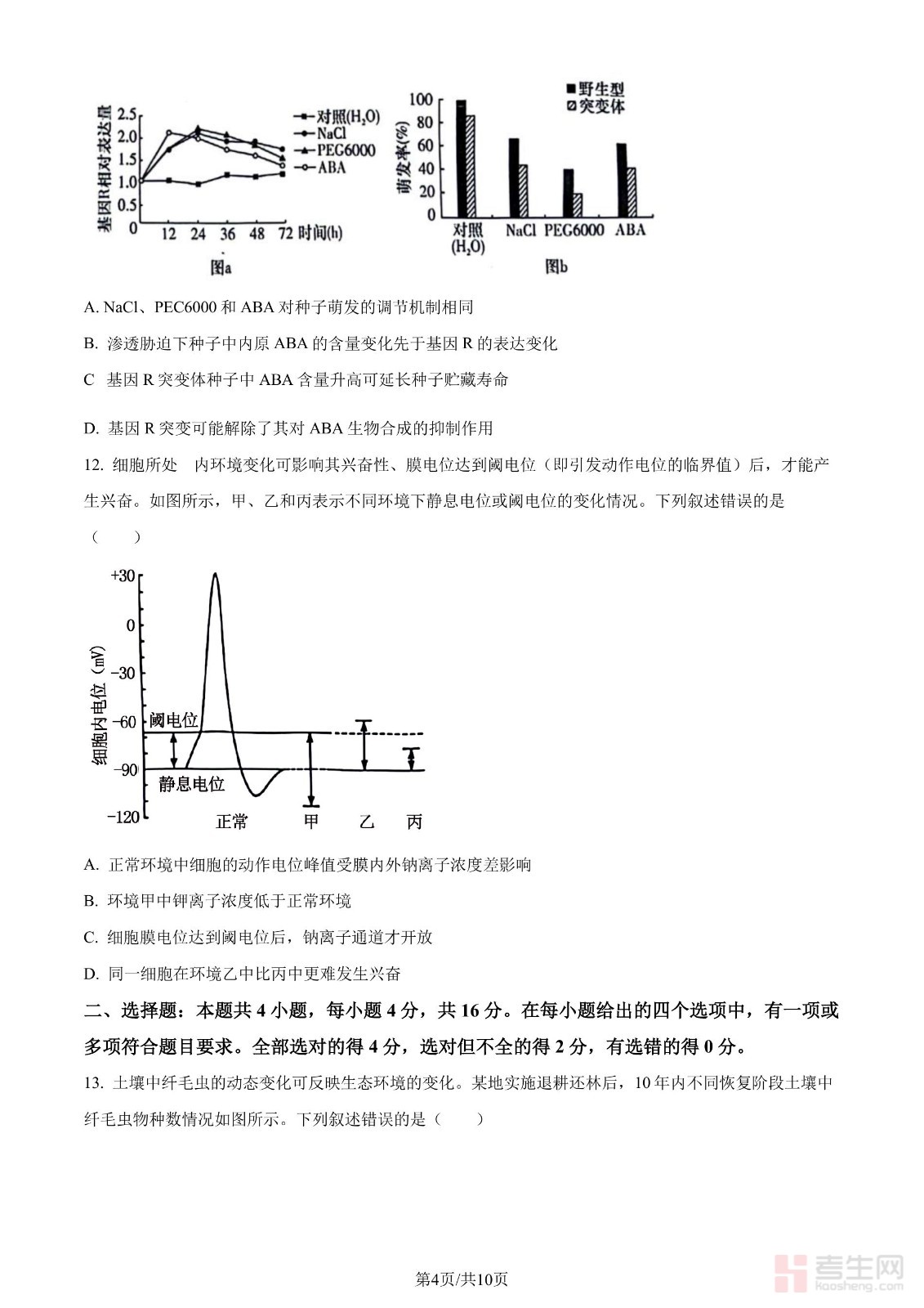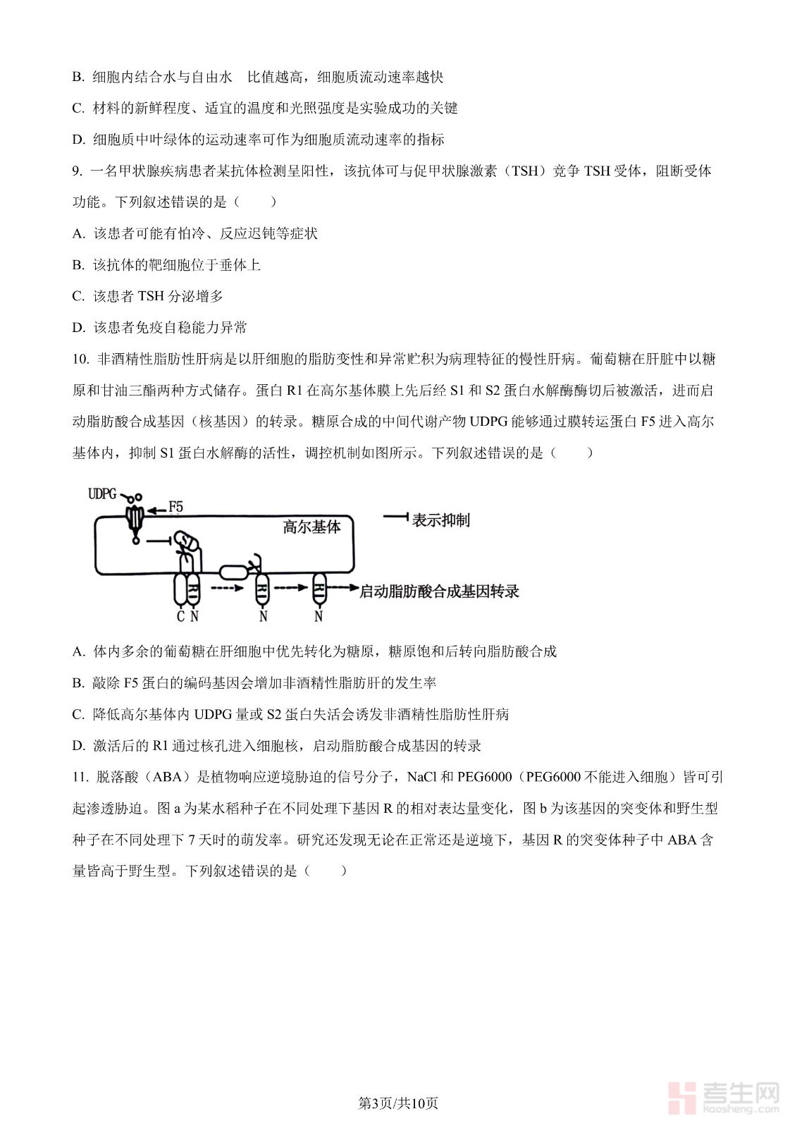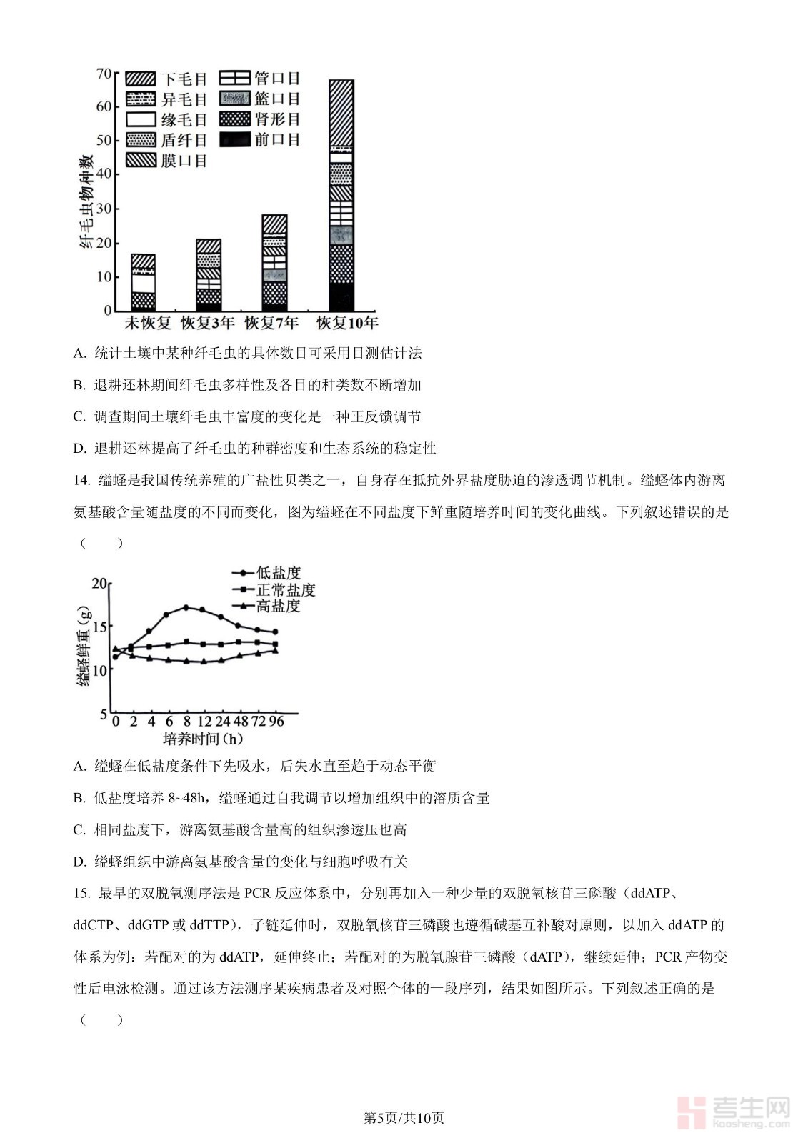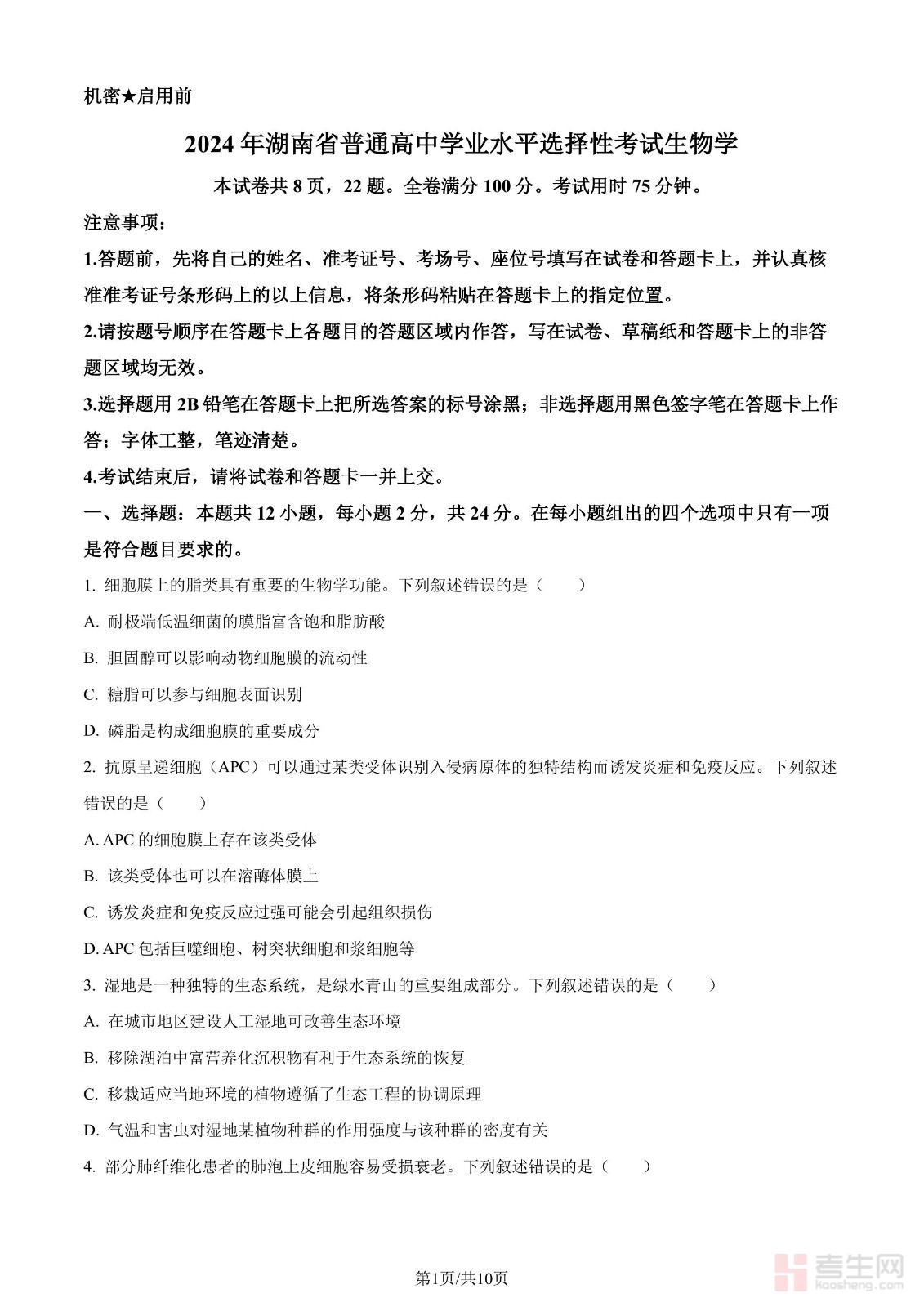年湖南省普通高中学业水平选择性考试生物学