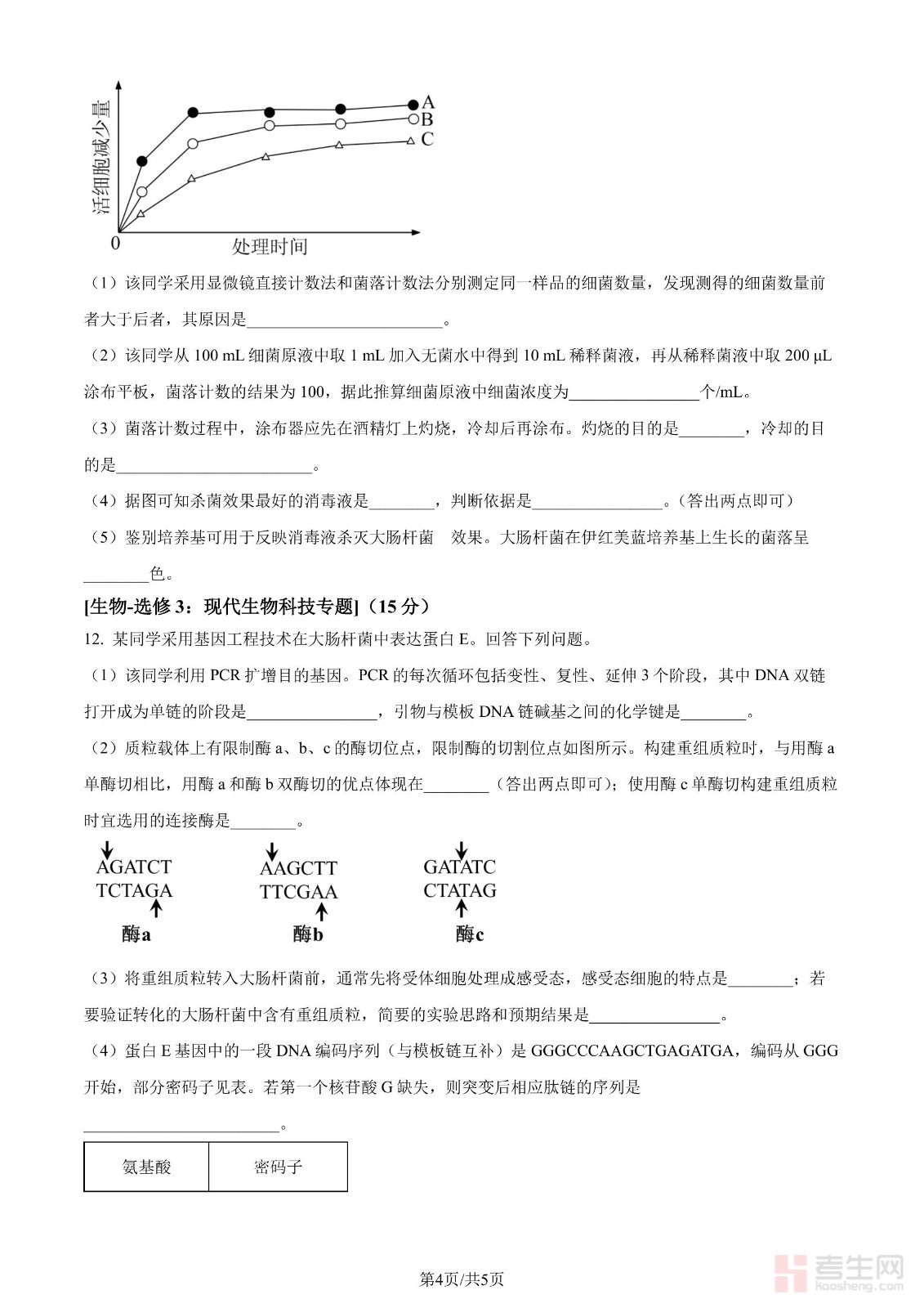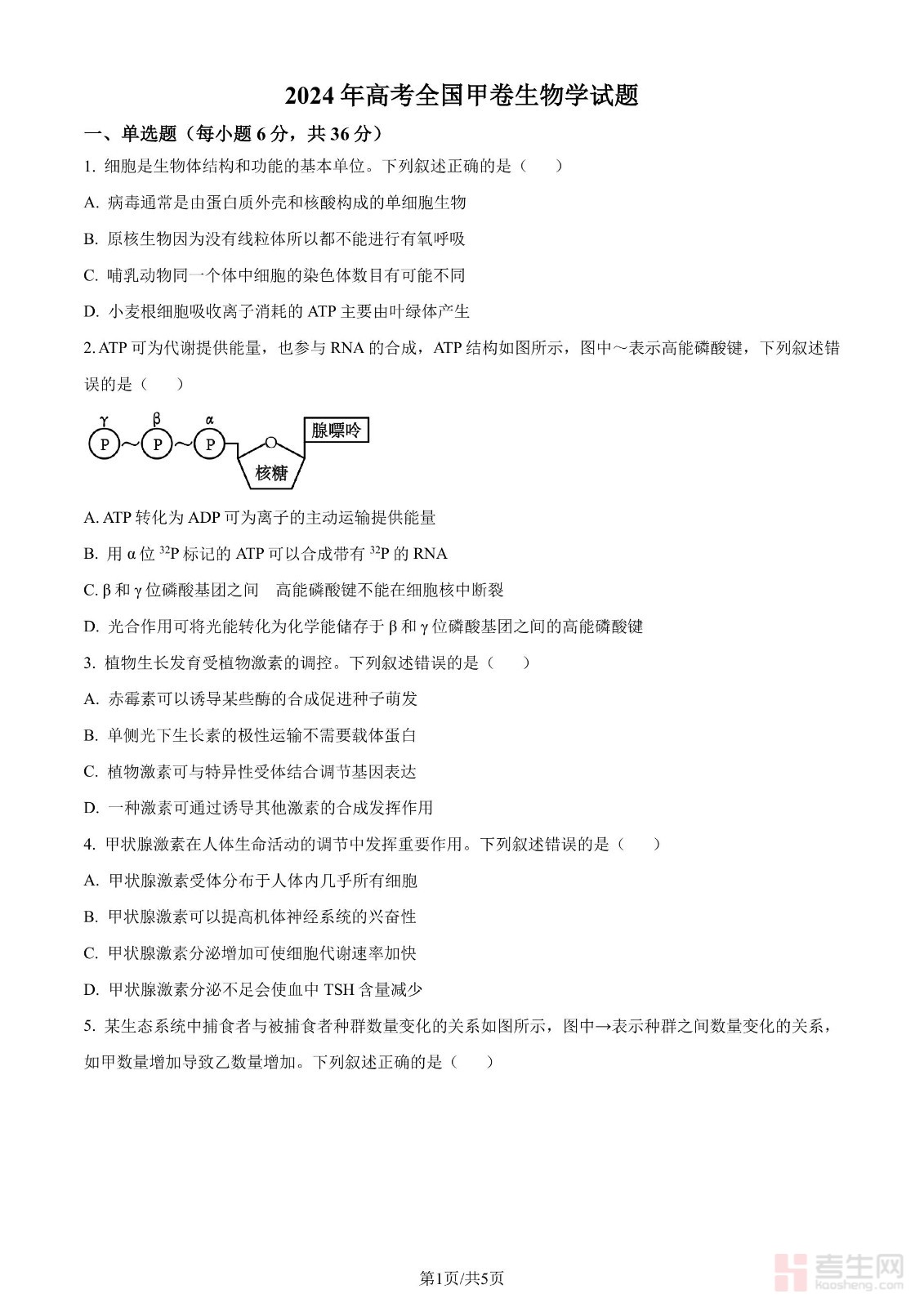 2024年高考生物试卷(全国甲卷)(空白卷)