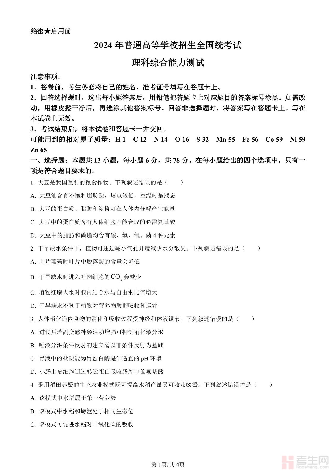 2024年新课标Ⅰ卷英语卷高考真题文字版(含听力)