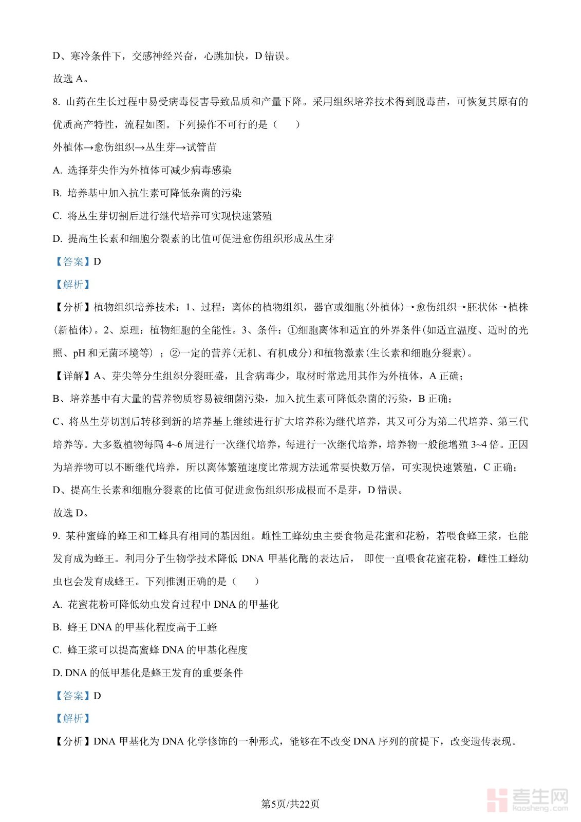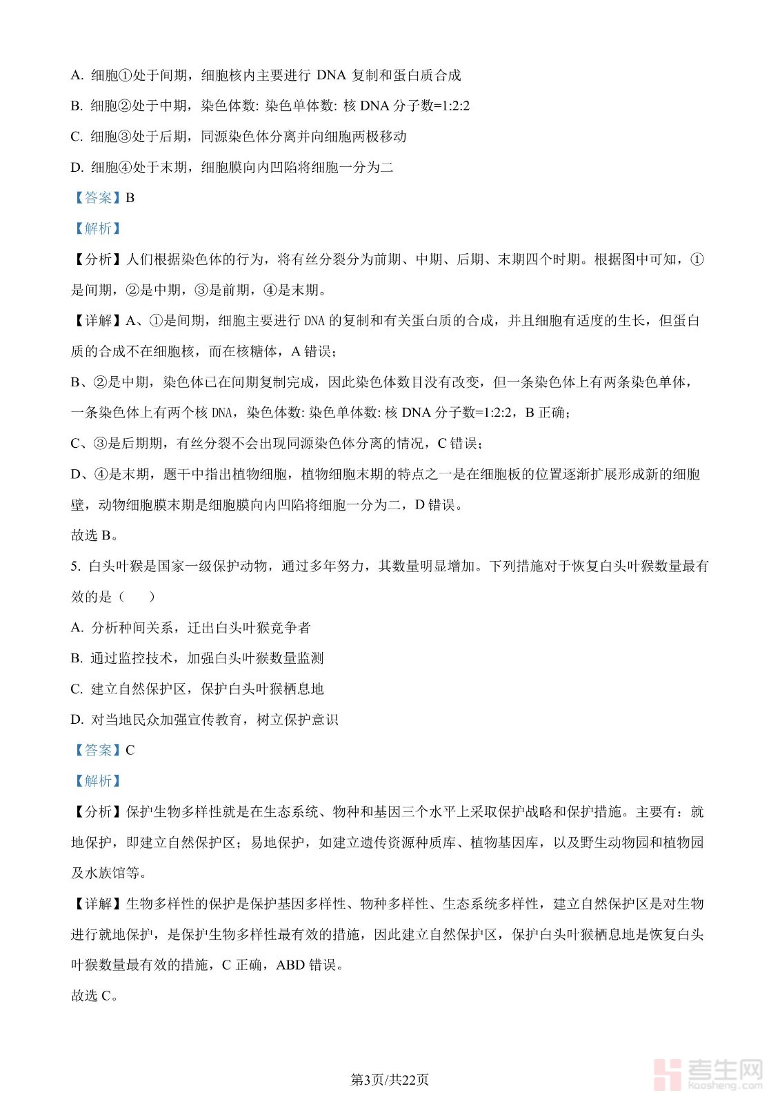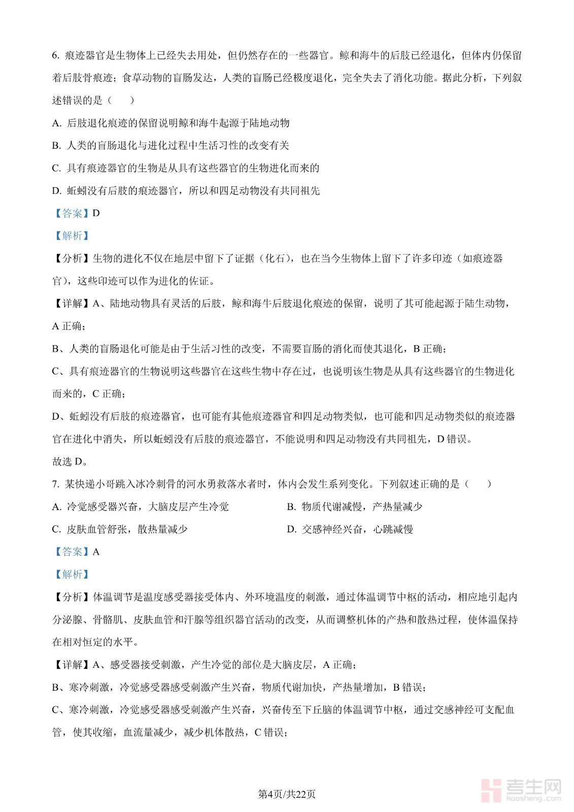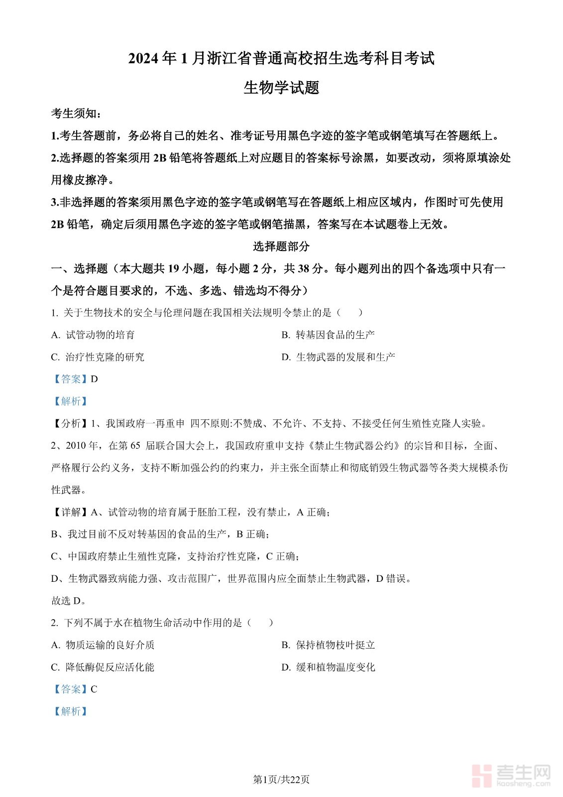 2024年高考生物试卷(浙江)(1月)(解析卷)