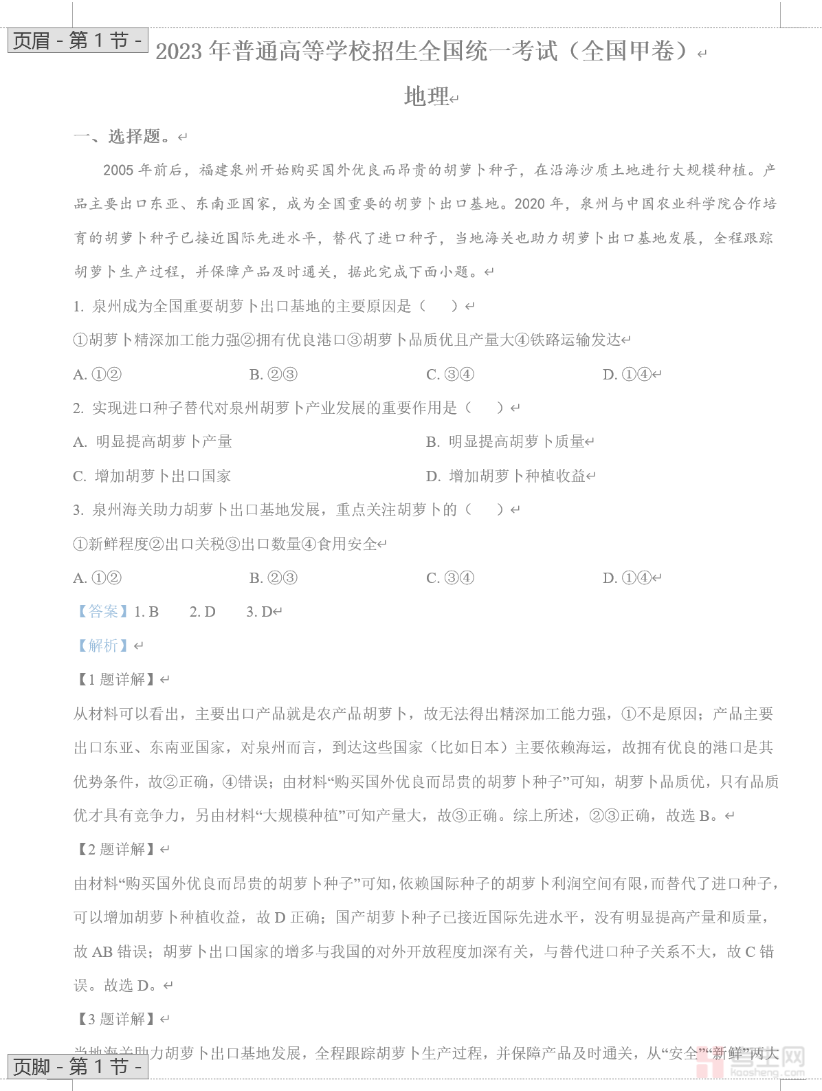 2023年新课标全国Ⅰ卷英语真题(解析版)