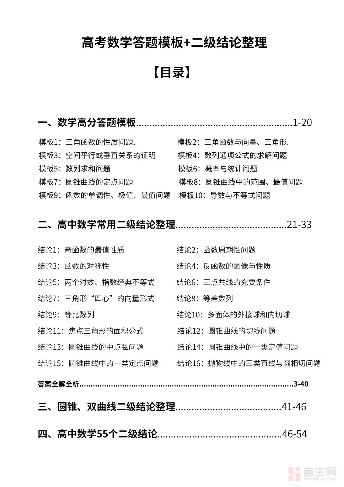 亲爱的考生们,冲刺高考的日子越来越近,数学这门科目是否让你感到压力山大?别担心!我为大家准备了一份超级实用的“高考数学高分答题模板”,附带二级结论,帮助你轻松攻克难题!
