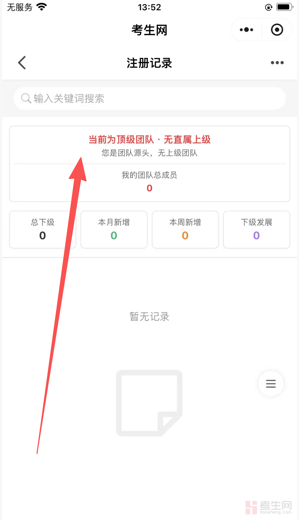 如果您没有向上级,会提示您是顶级会员,无上级,您可以通过官网的联系电话,联系客服,或发送邮件给kaosheng@kaosheng.com,由客服为您指定专属服务经理,让您享受一对一服务。